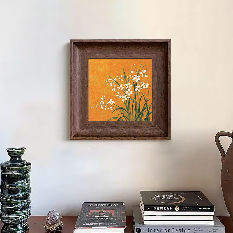 - 25*25 см [сердцевина для масляной живописи на холсте + оргстекло + фоторамка цвета ореха]