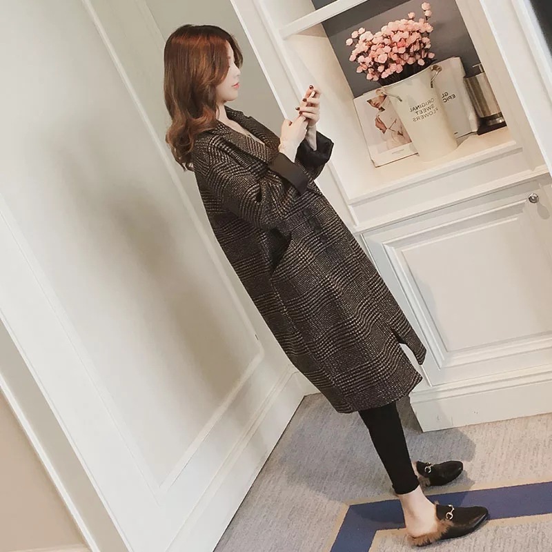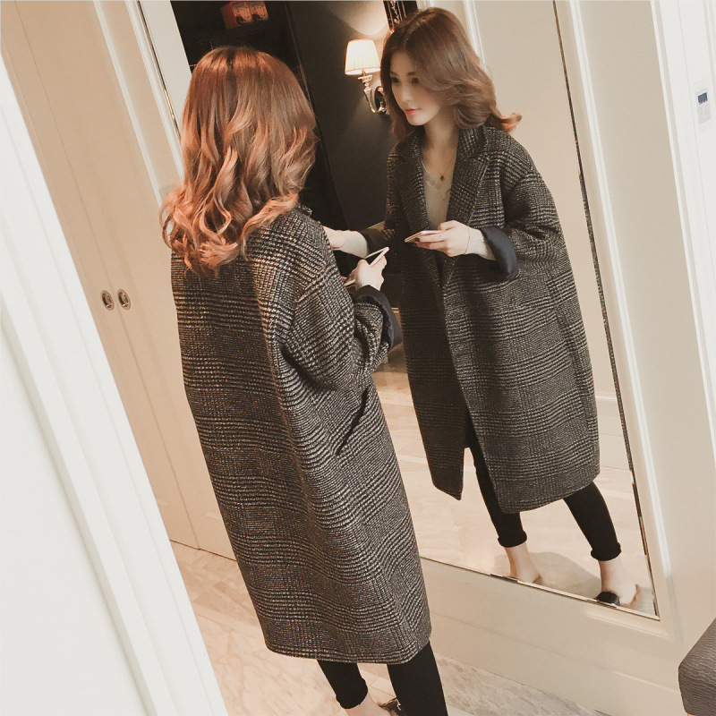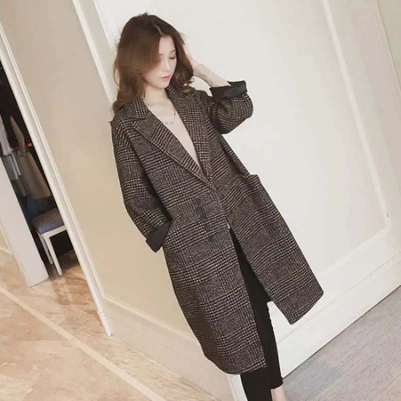 Главная страница > Южная Корея 2024 осень и зима новая корейская версия шерстяного пальто Мори средней длиной харадзюку клетчатое шерстяное пальто женское зимнее