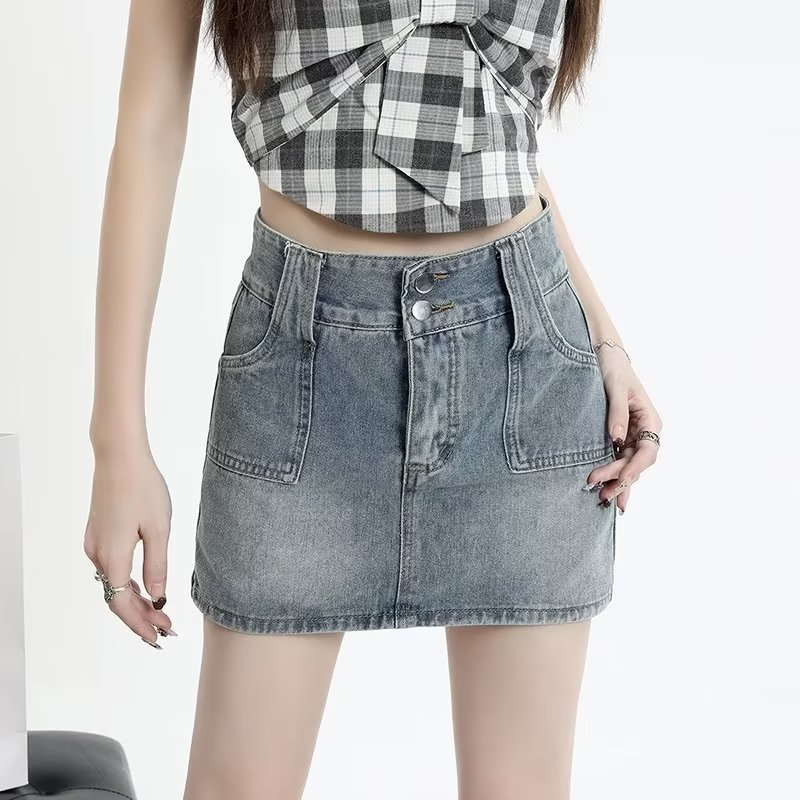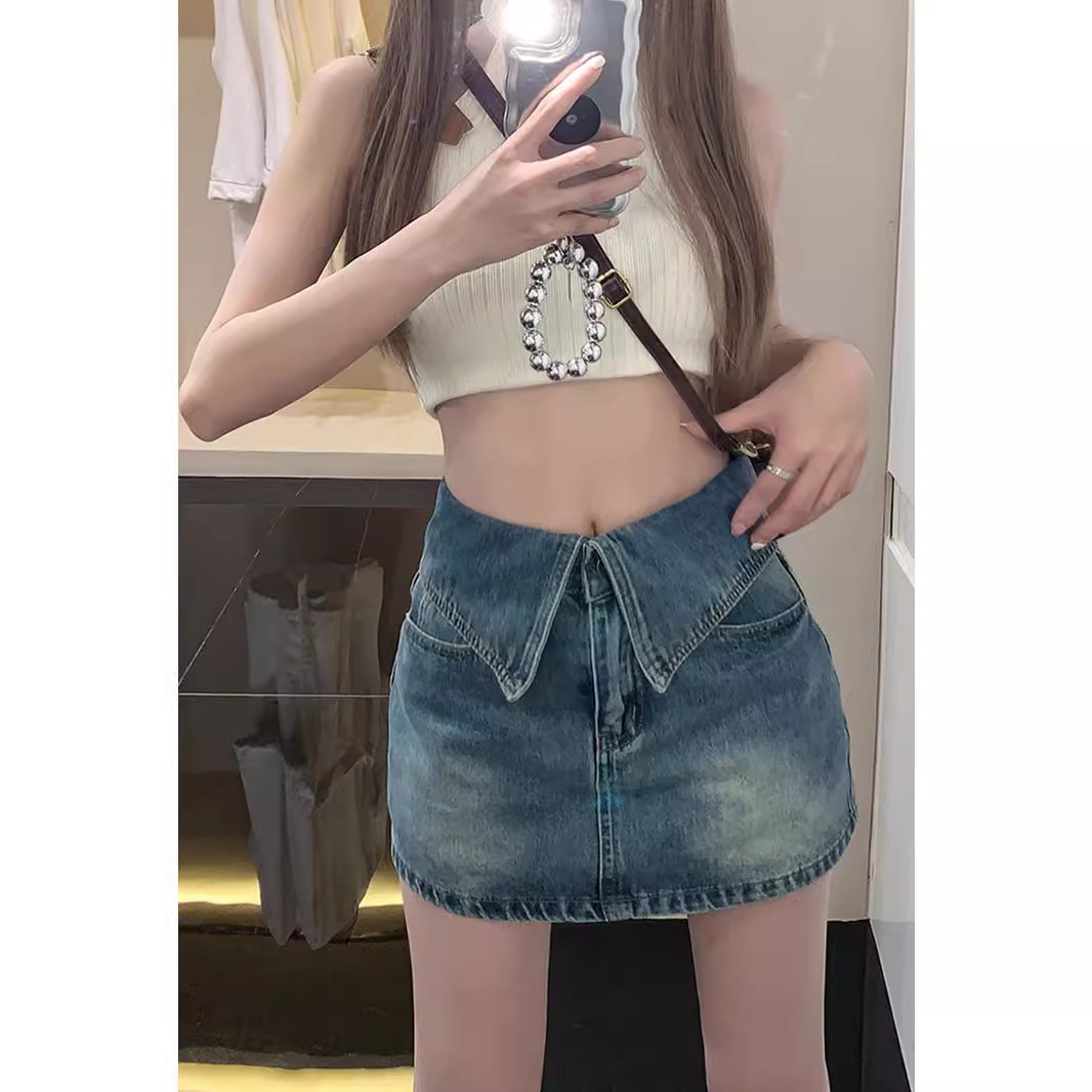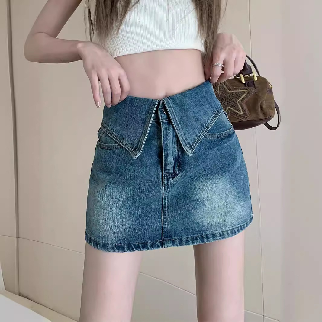 Новая джинсовая короткая юбка женские летние тонкие 2023 шорты с высокой талией A-Line Pantskirt с защитой от воздействия юбка-футляр оптом