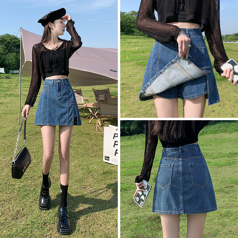 Главная страница > Новая джинсовая короткая юбка женские летние тонкие 2023 шорты с высокой талией A-Line Pantskirt с защитой от воздействия юбка-футляр оптом