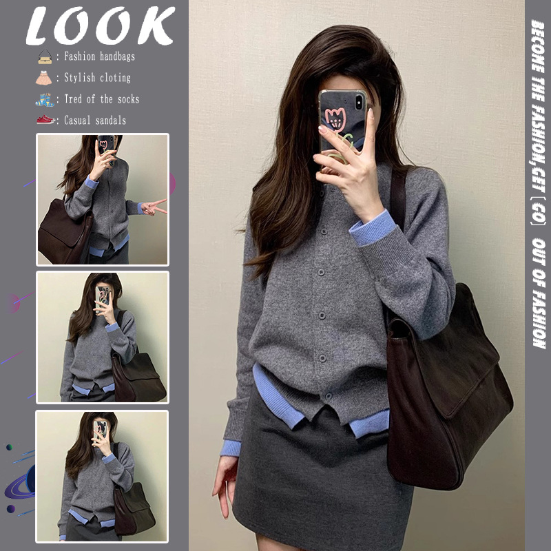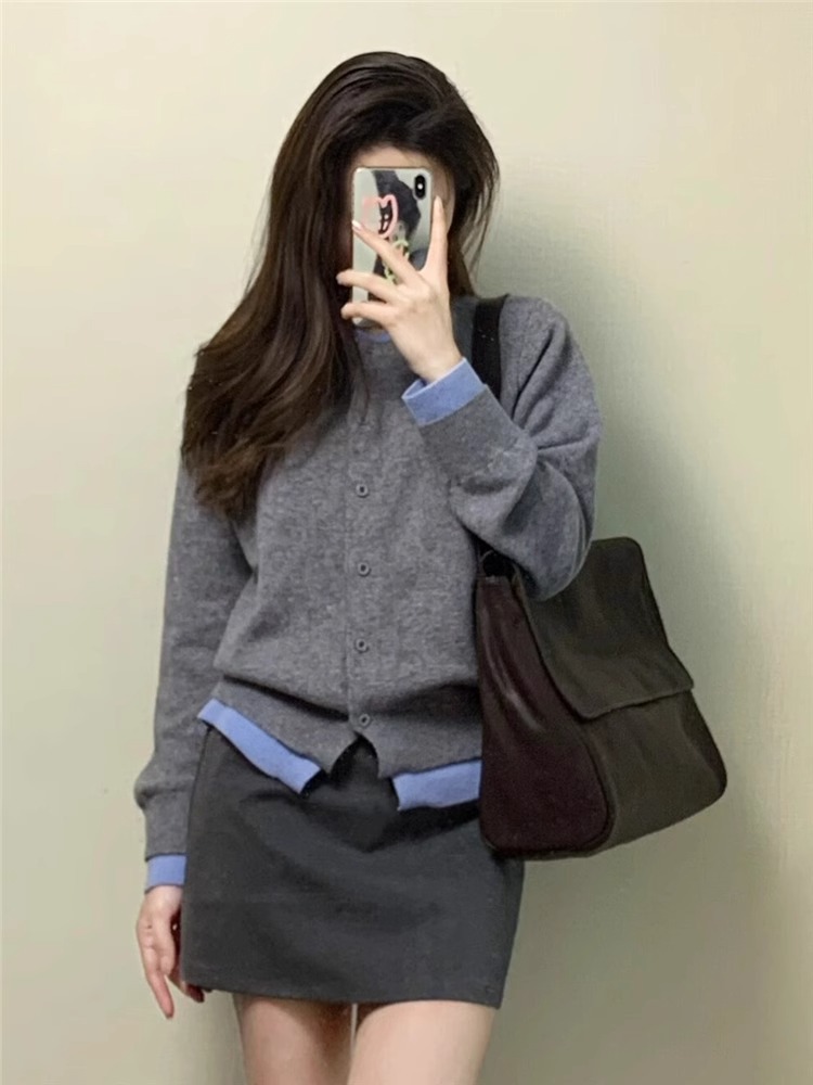 Главная страница > Серый поддельный трикотажный кардиган куртка женская осень