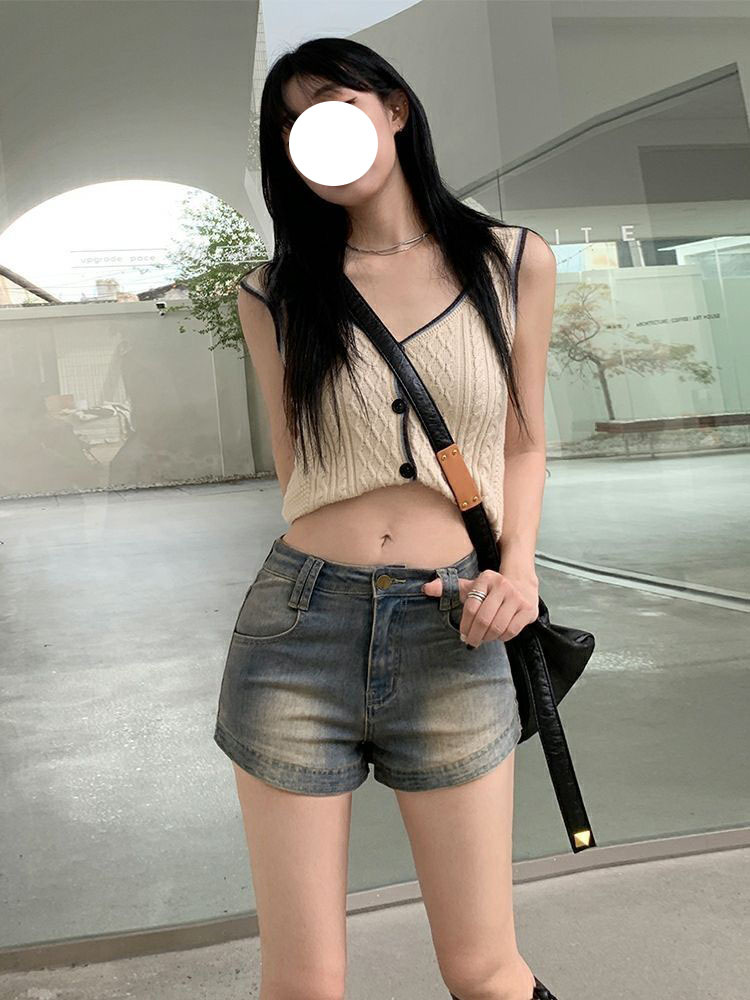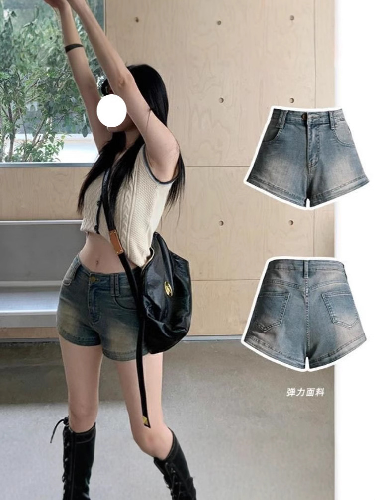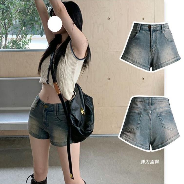 Главная страница > Американские ретро джинсовые шорты с высокой талией для женщин, лето 2025, новый дизайн, свободные обтягивающие шорты трапециевидной формы, облегающие бедра