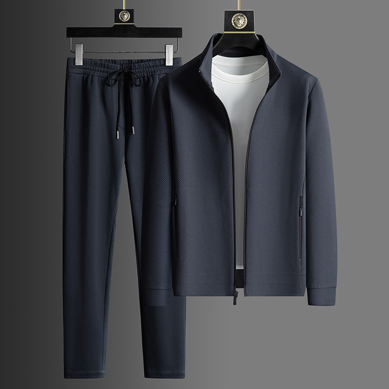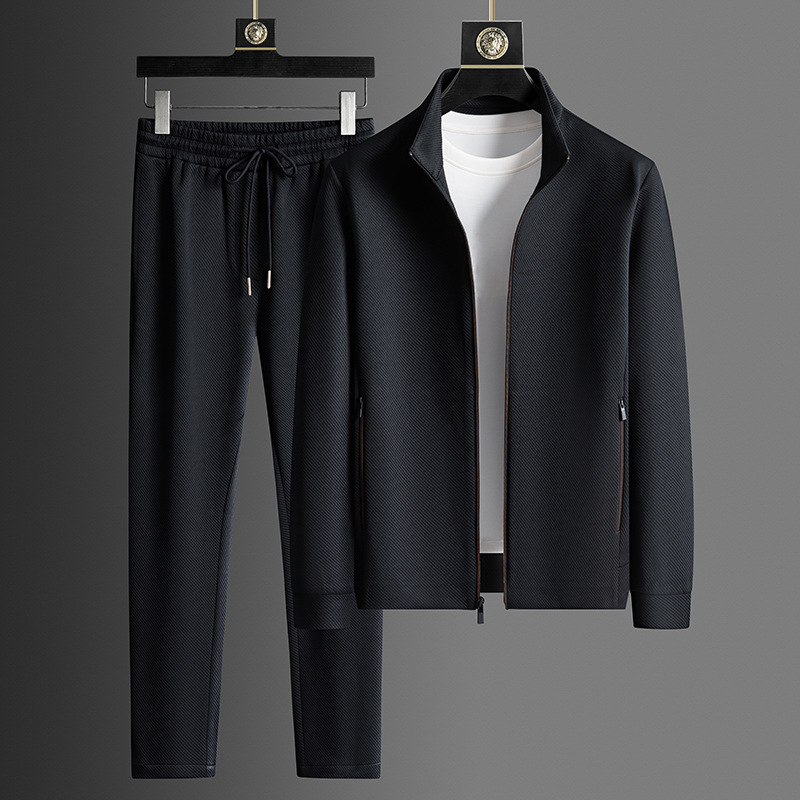 Главная страница > Мужской спортивный костюм на весну и осень, кардиган с воротником-стойкой, приталенная куртка, стильные брюки, комплект из двух предметов оптом