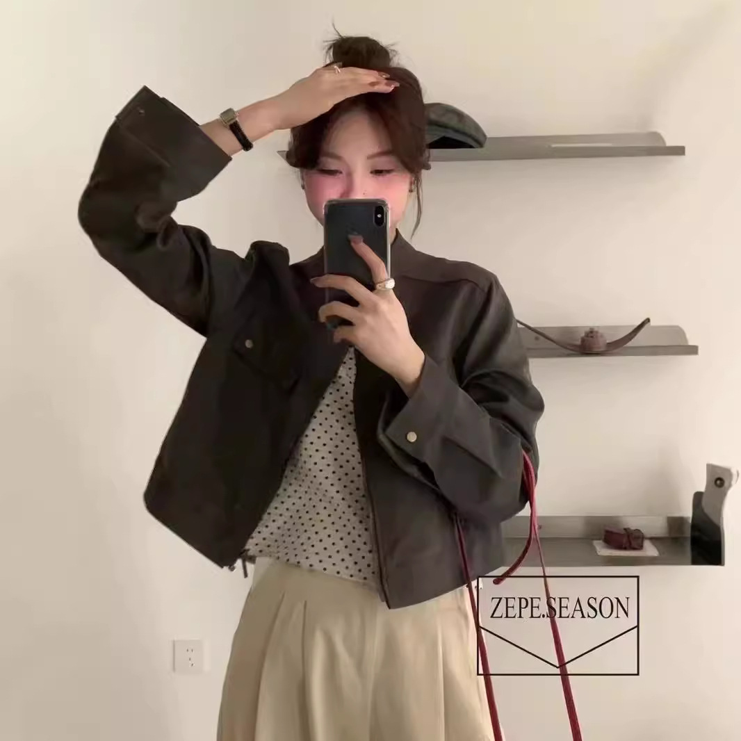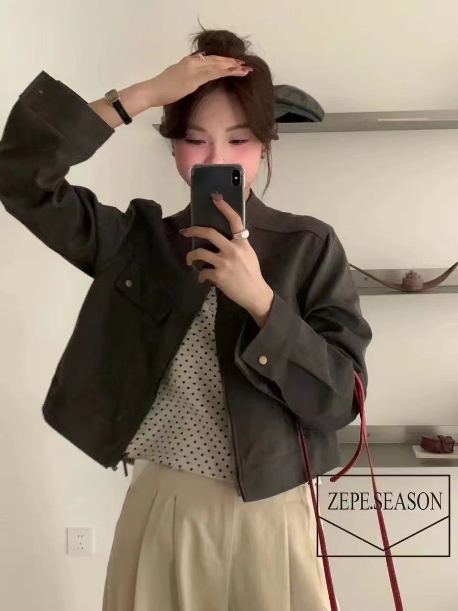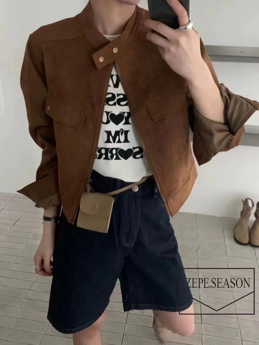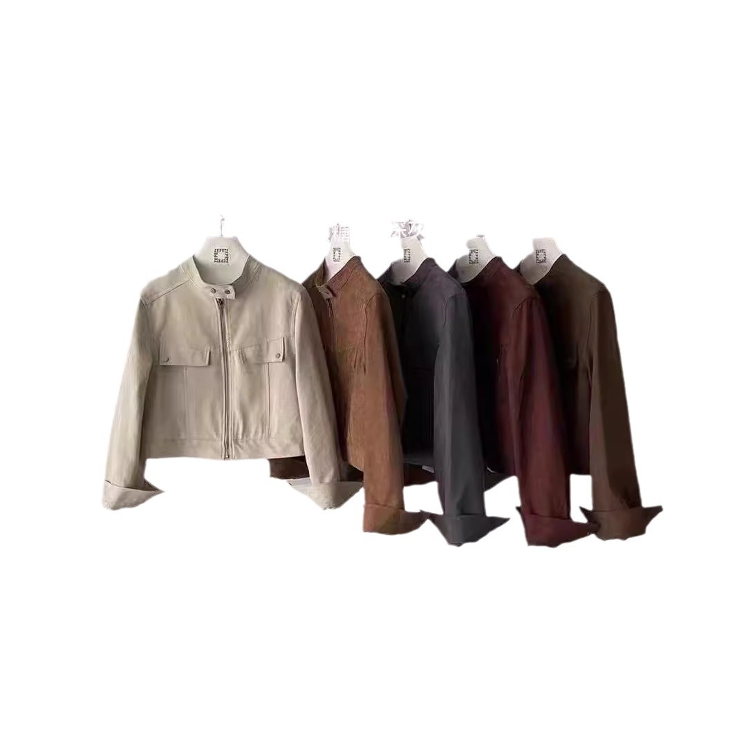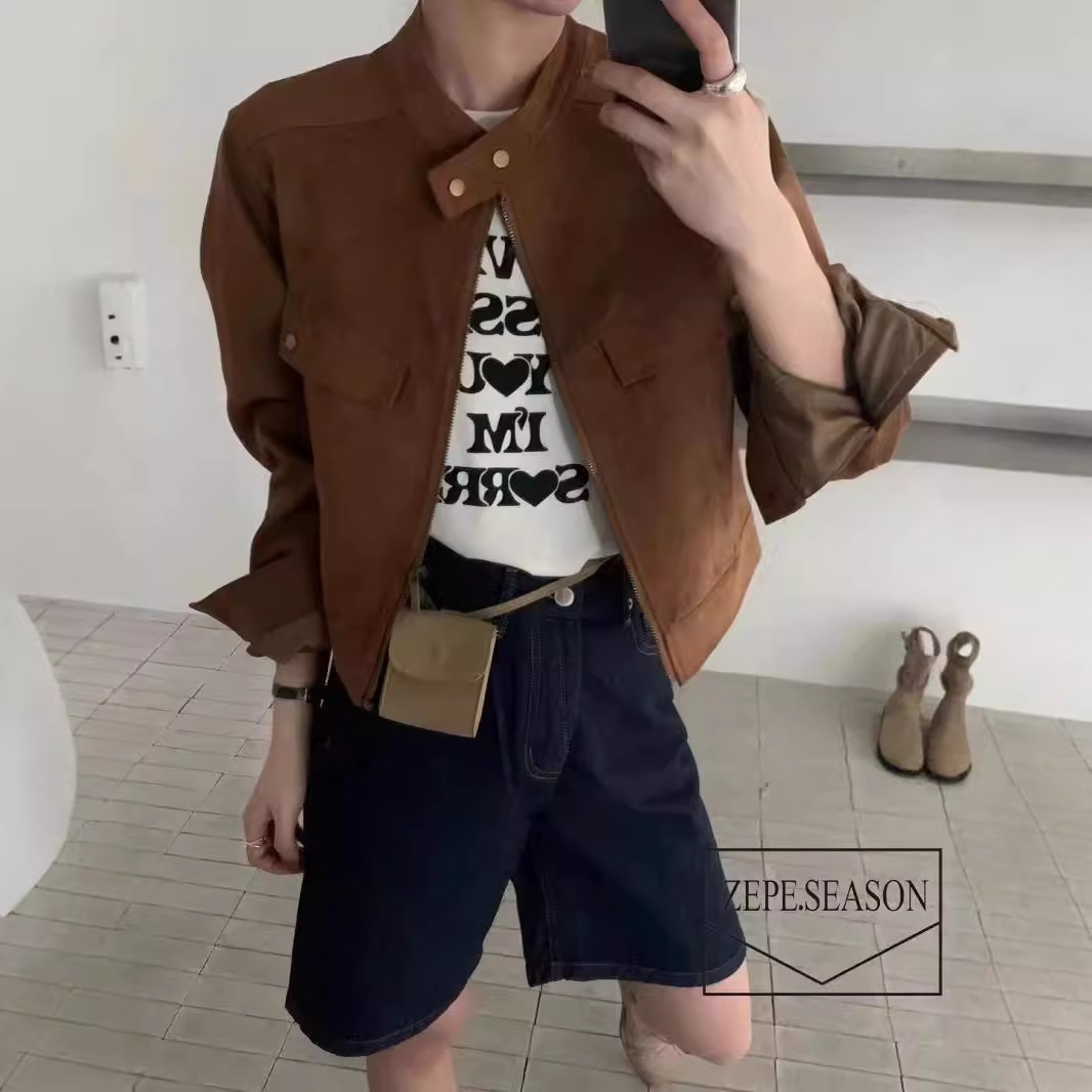 Главная страница > Замшевая куртка для женщин, укороченная модель, цвет ангора-красный, новинка осени 2024, винтажный стиль, корейский ретро-стиль.