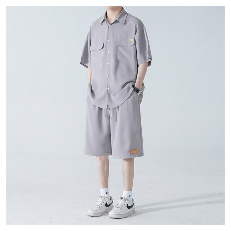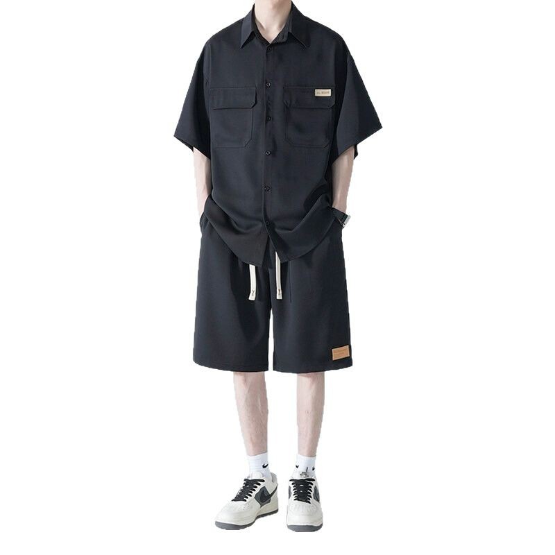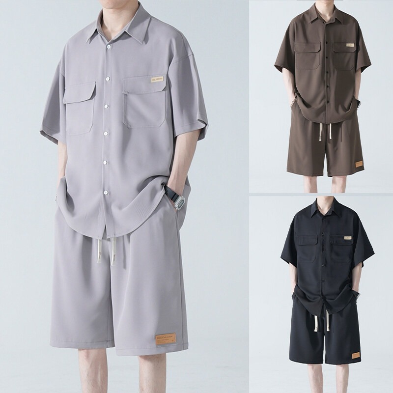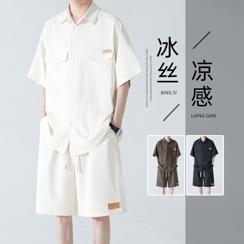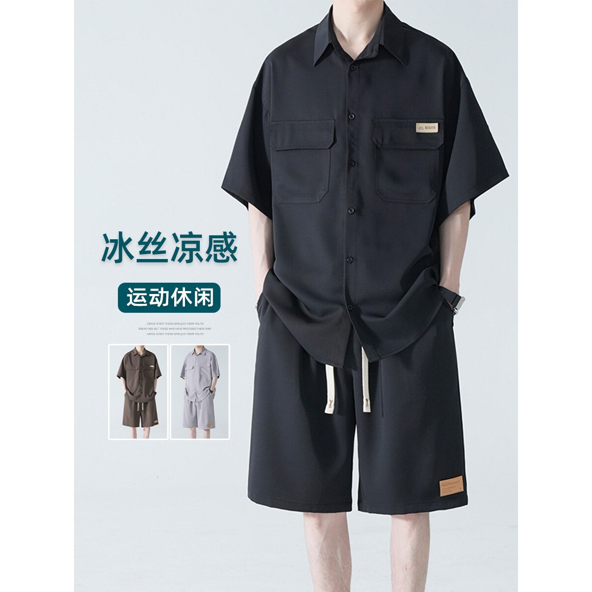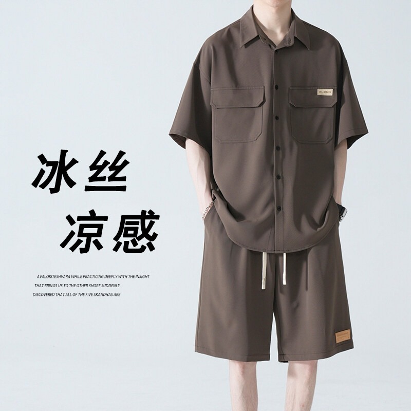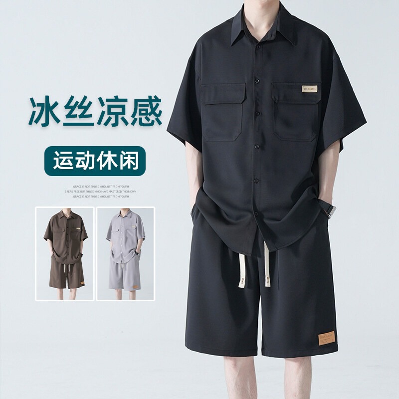 Главная страница > Летняя мужская футболка с коротким рукавом, свободная футболка большого размера из ледяного шелка с отложным воротником, стильный повседневный наряд для мужчин, модный