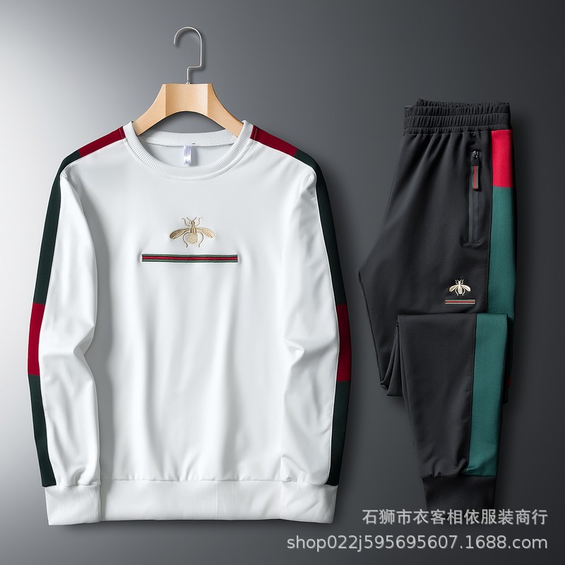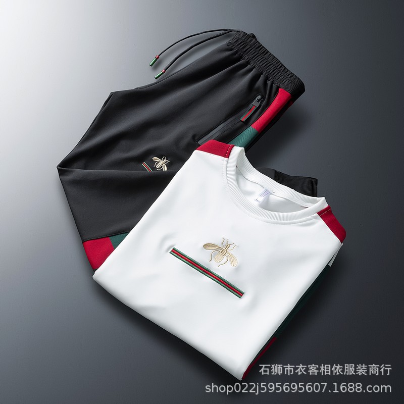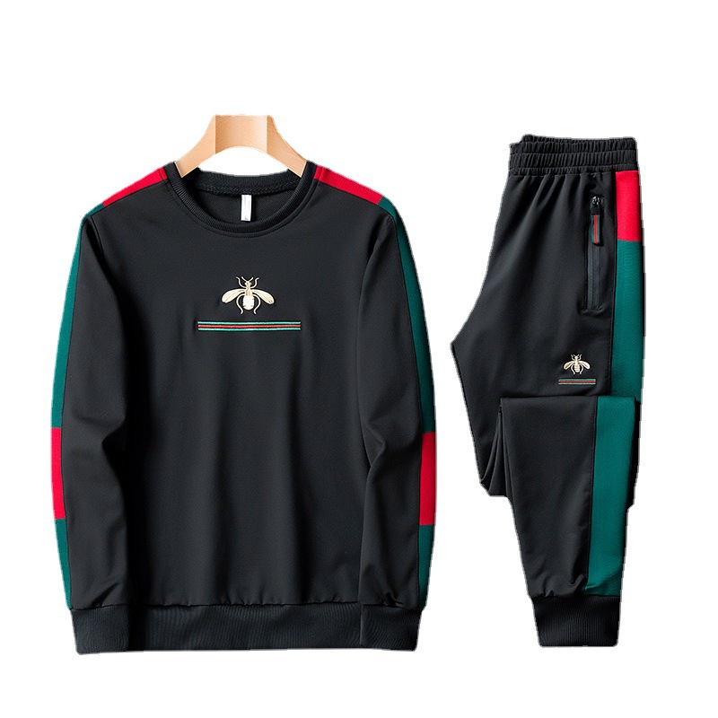 Главная страница > Трансграничный повседневный костюм Мужская спортивная одежда с вышивкой в виде пчелы, весенне-Осенняя мода, свитер с круглым вырезом, спортивный Модный комплект из двух предметов