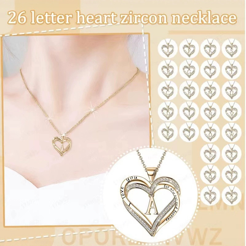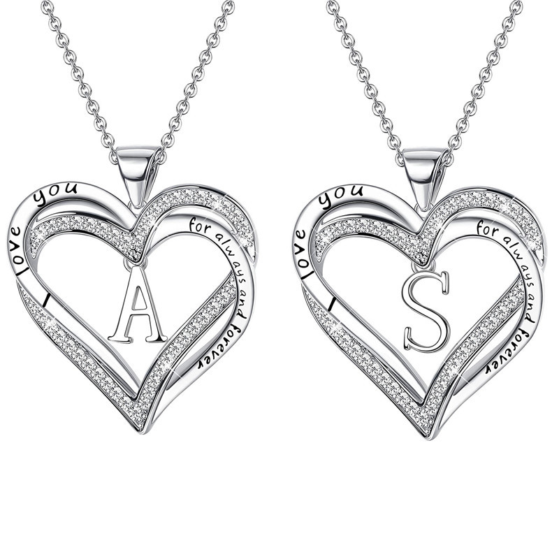 Главная страница > Трансграничные взрывы Двойное сердце бриллиантовое ожерелье 26 Английских Букв надписи ожерелье любителей аксессуары