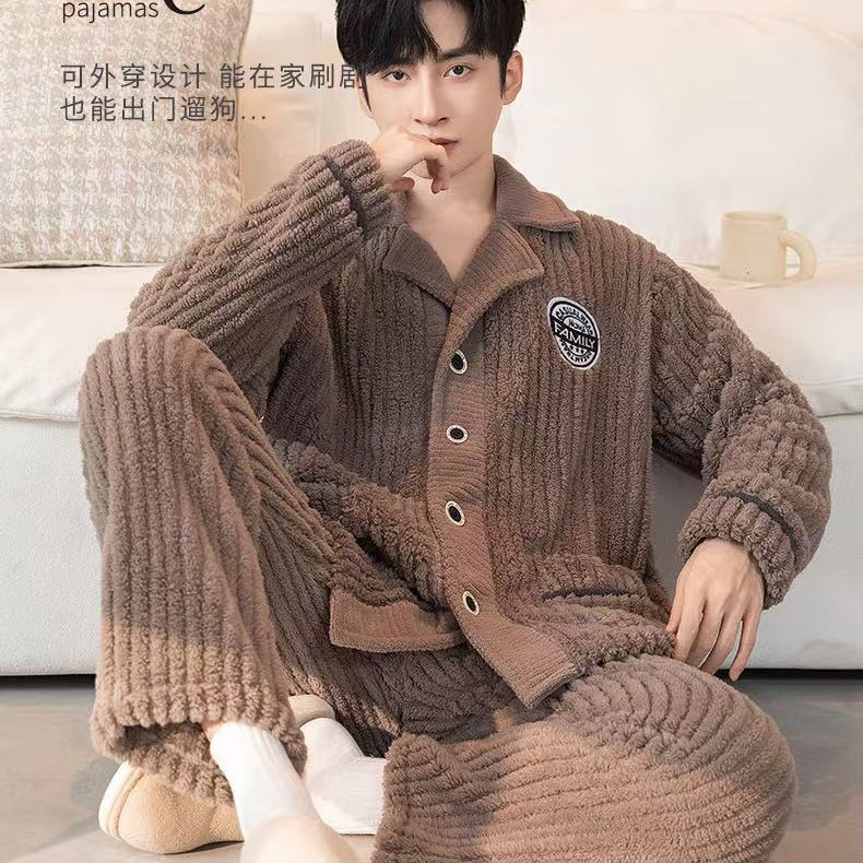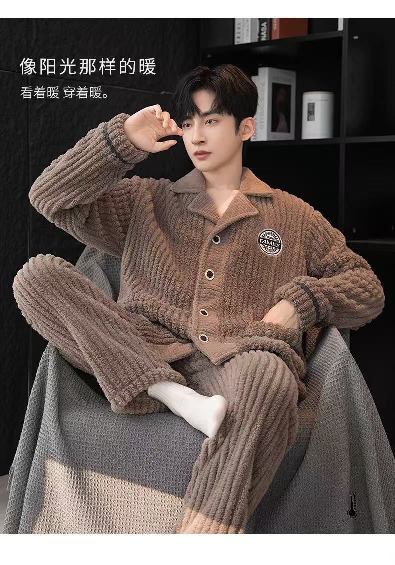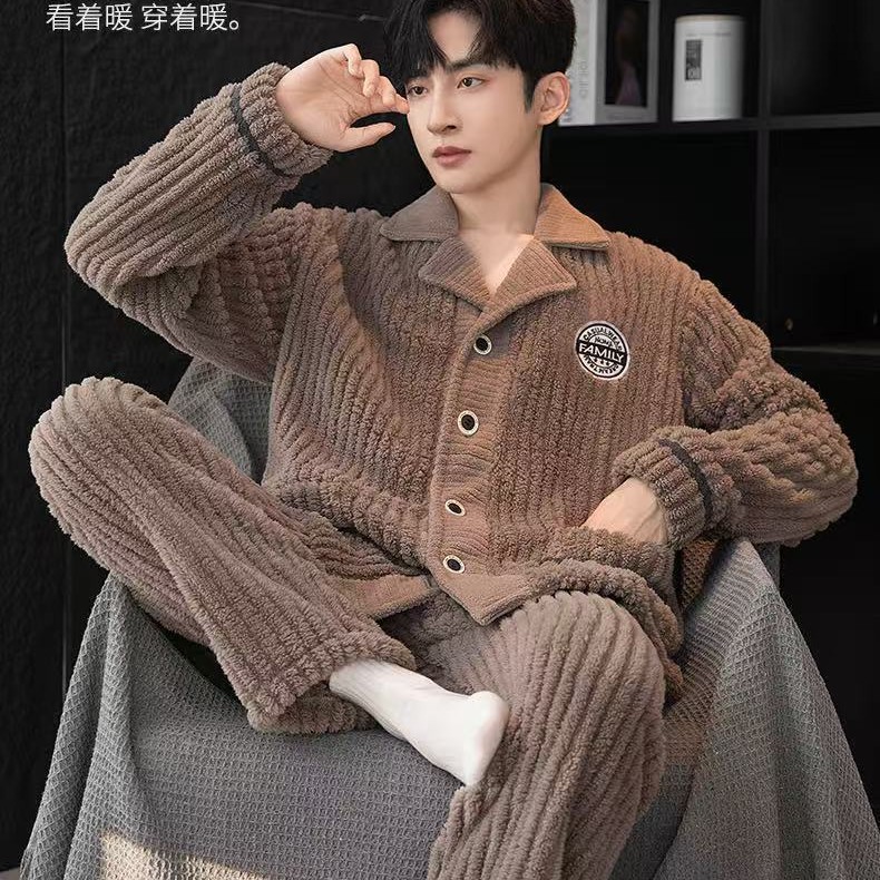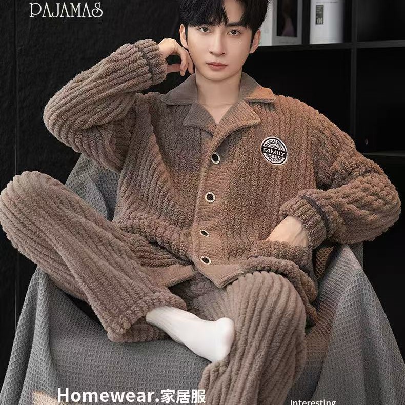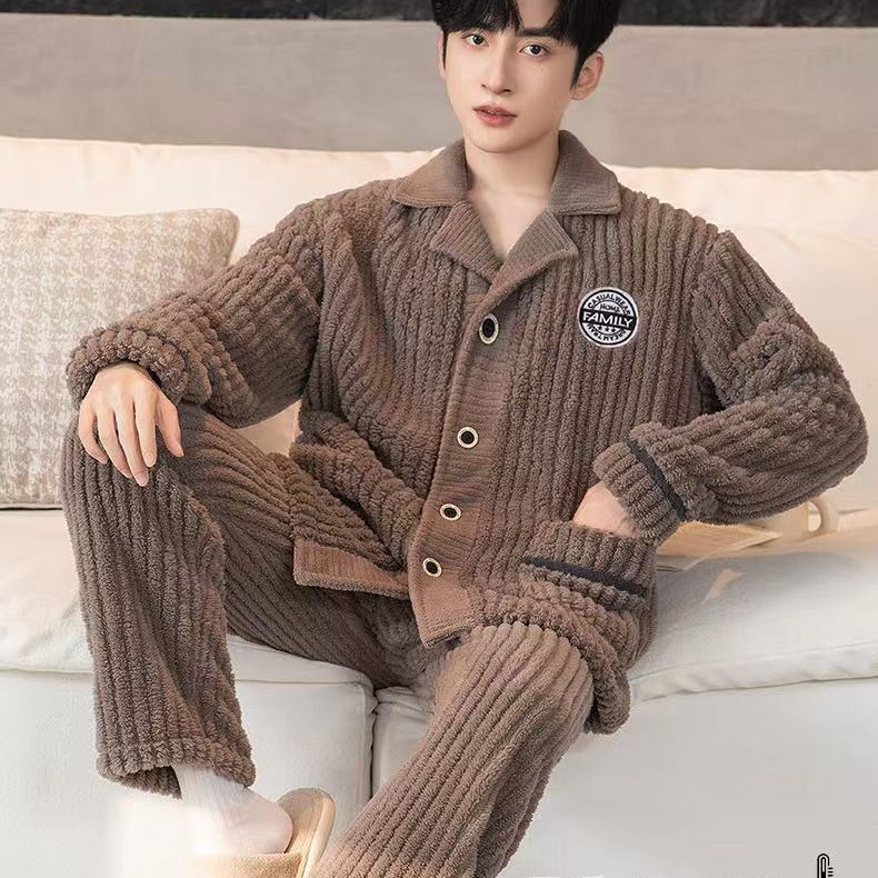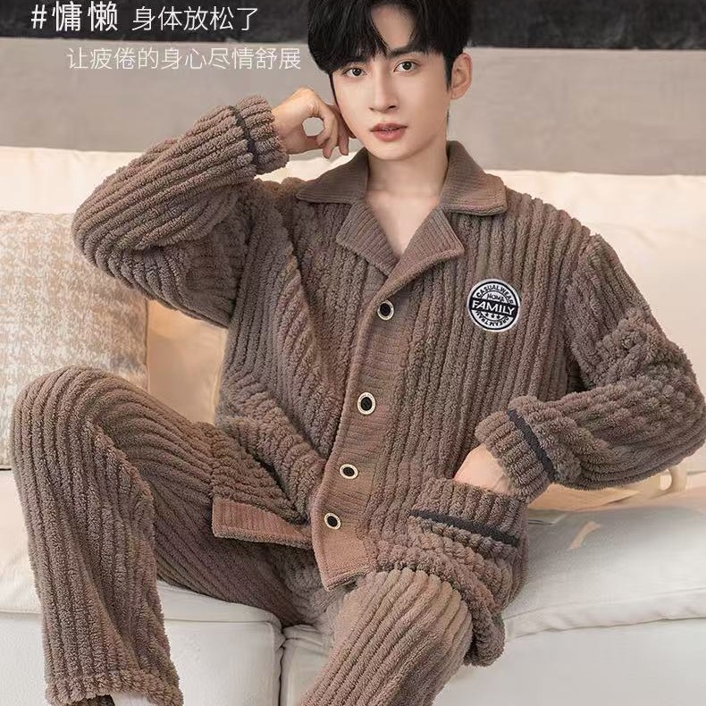 Главная страница > Осенне-зимние мужские пижамы, осенне-зимние бархатные утолщенные буквы, повседневные полоски, комплект теплой домашней одежды большого размера из хлопка