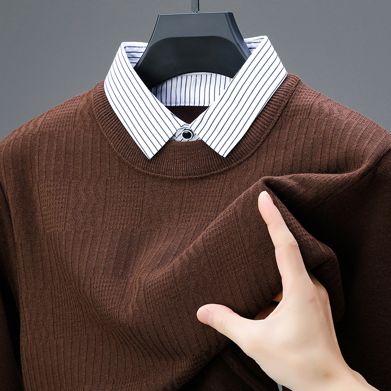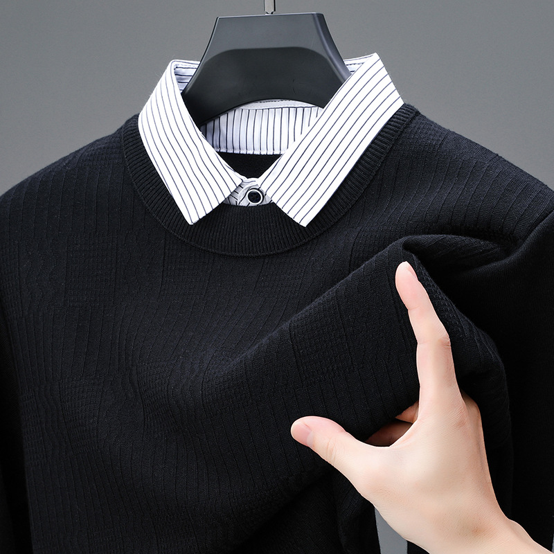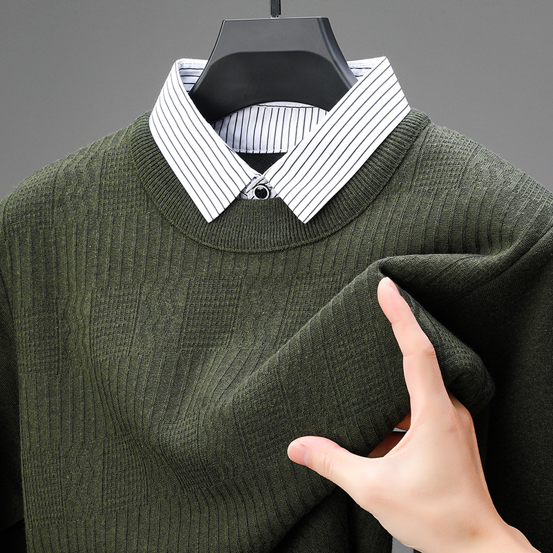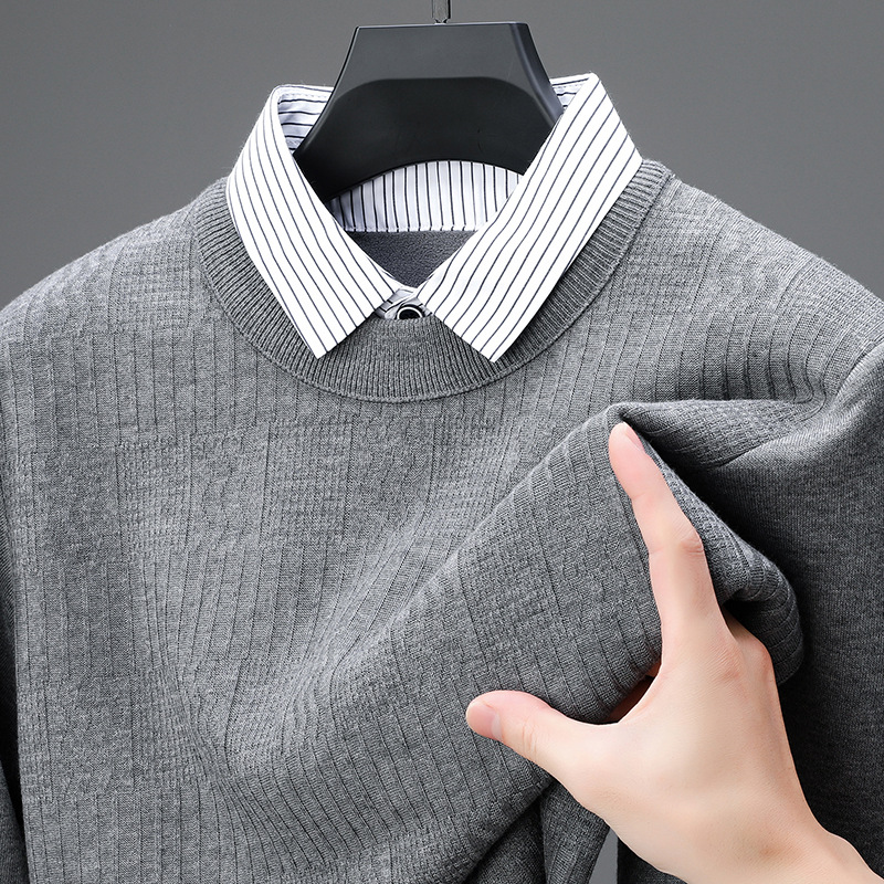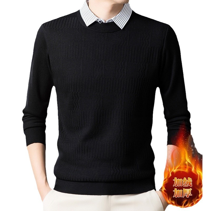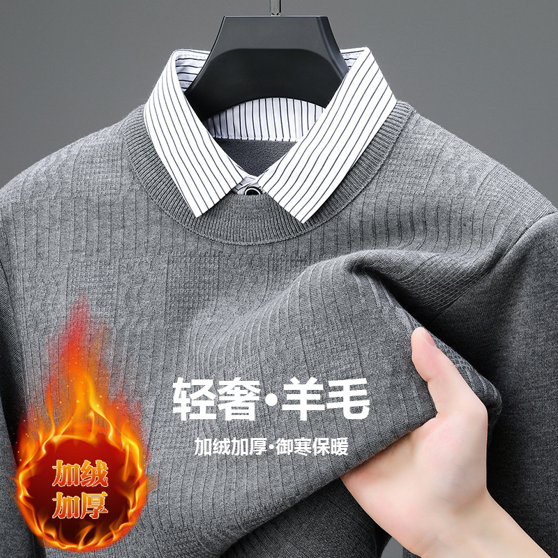 Puyuan шерстяной свитер мужской 2024 зимний новый толстый жаккардовый повседневный с однотонным поддельным свитером
