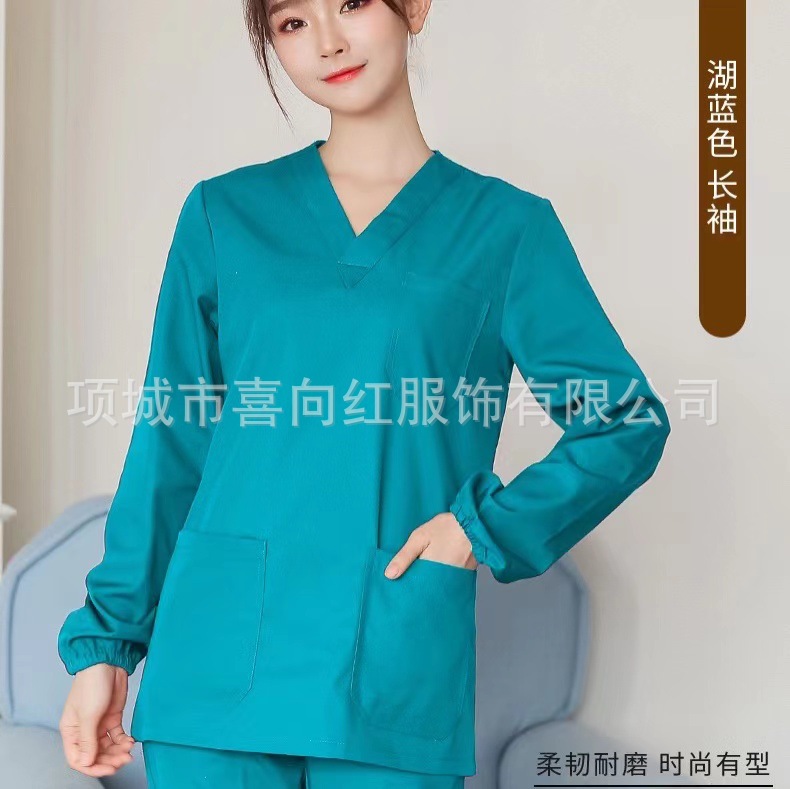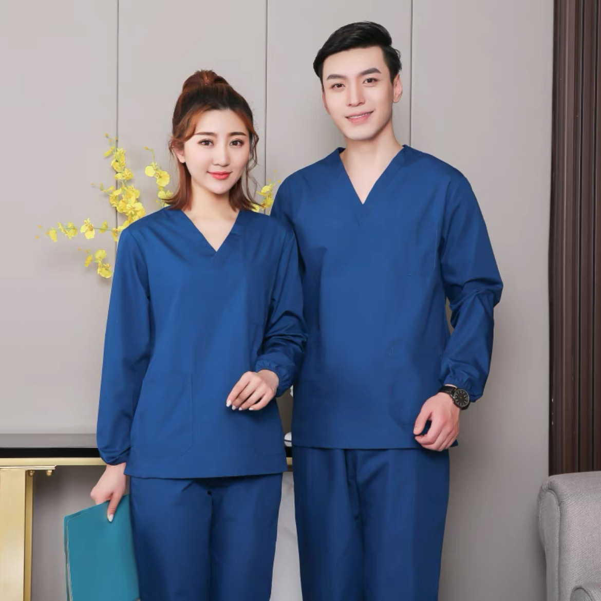 Озеро синий с длинным рукавом костюм (полиэстер хлопок)