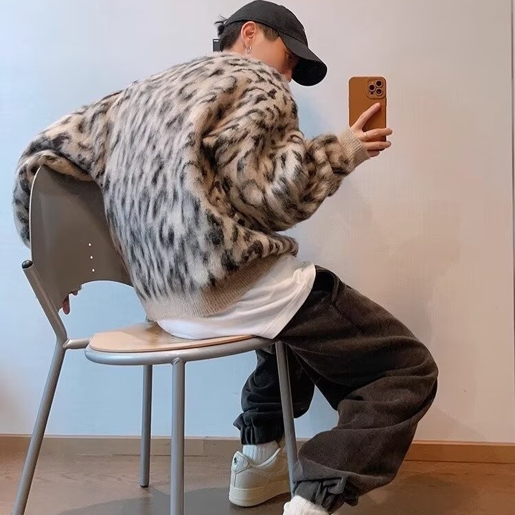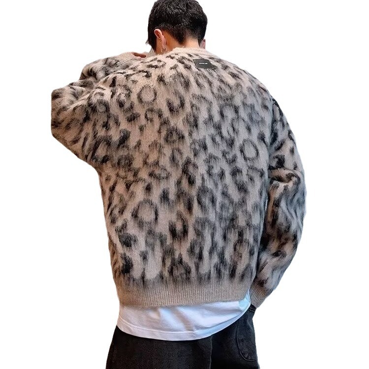 Главная страница > Махае Леопардовый свитер мужской осень-зима американский уличный прилив бренд ретро свободный ленивый стиль вязаный свитер с круглым вырезом