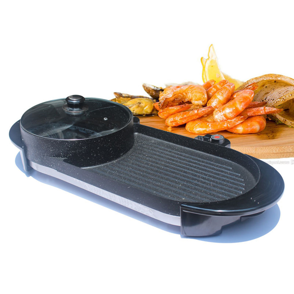Поколение многофункциональной электрической плиты для барбекю с антипригарным покрытием, ополаскивателя, встроенного горшка, электрическая форма для выпечки, горячий горшок с уткой мандарина