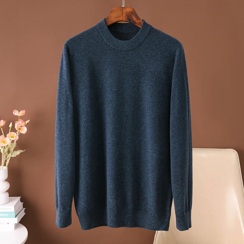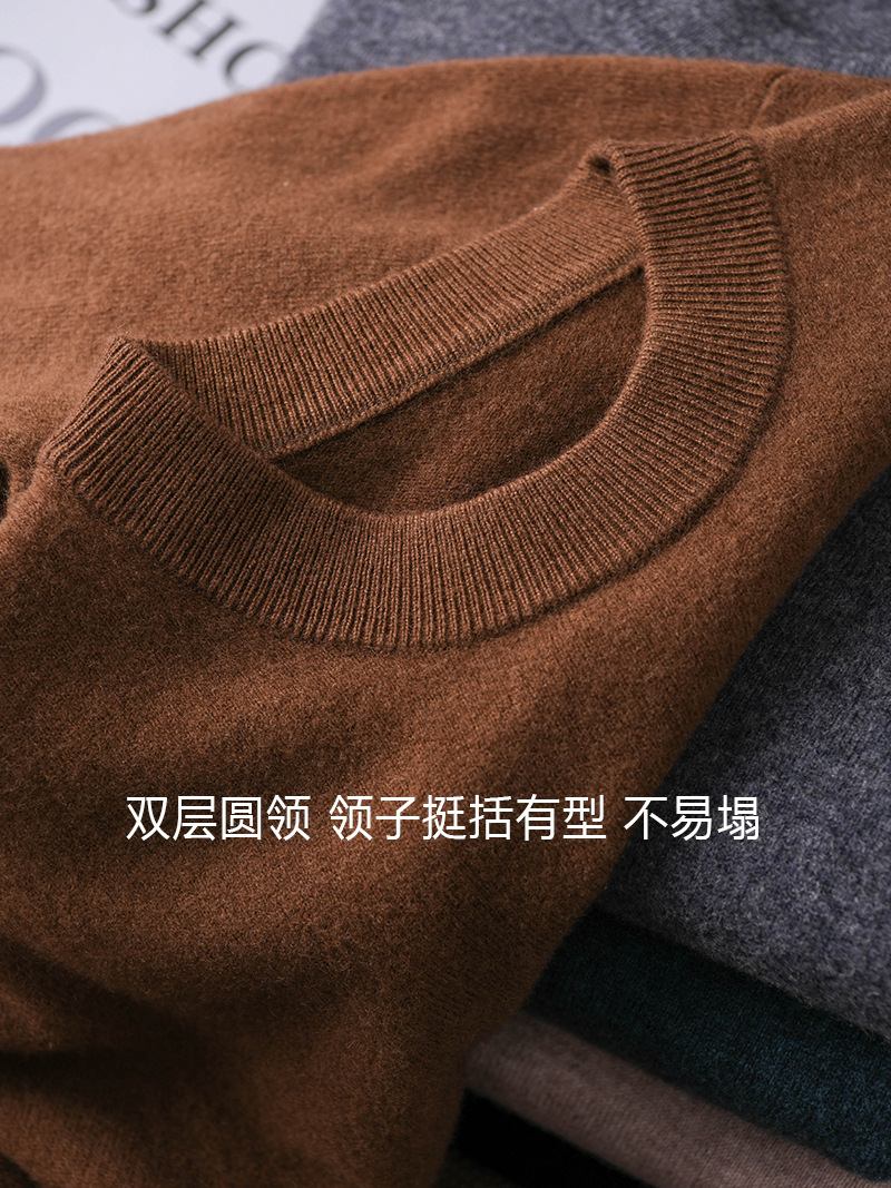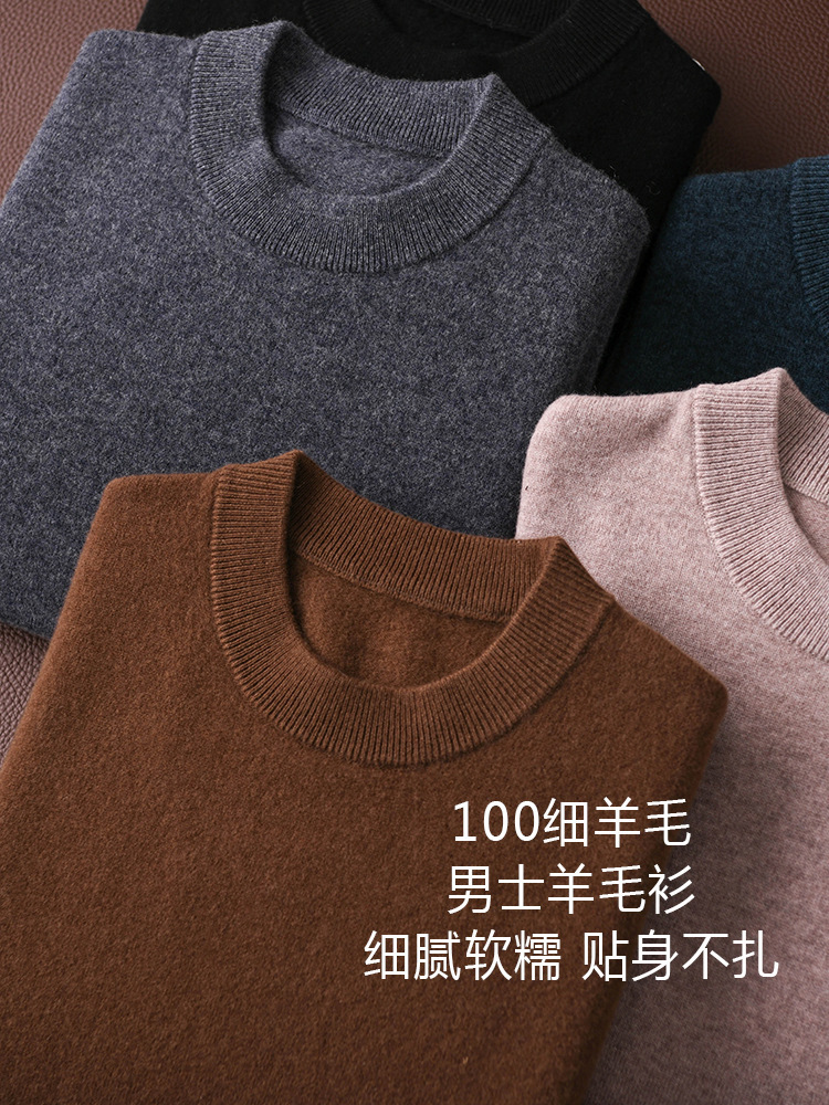 Осенний и зимний сплошной цвет мужской круглый воротник 100 полный шерстяной свитер свитер