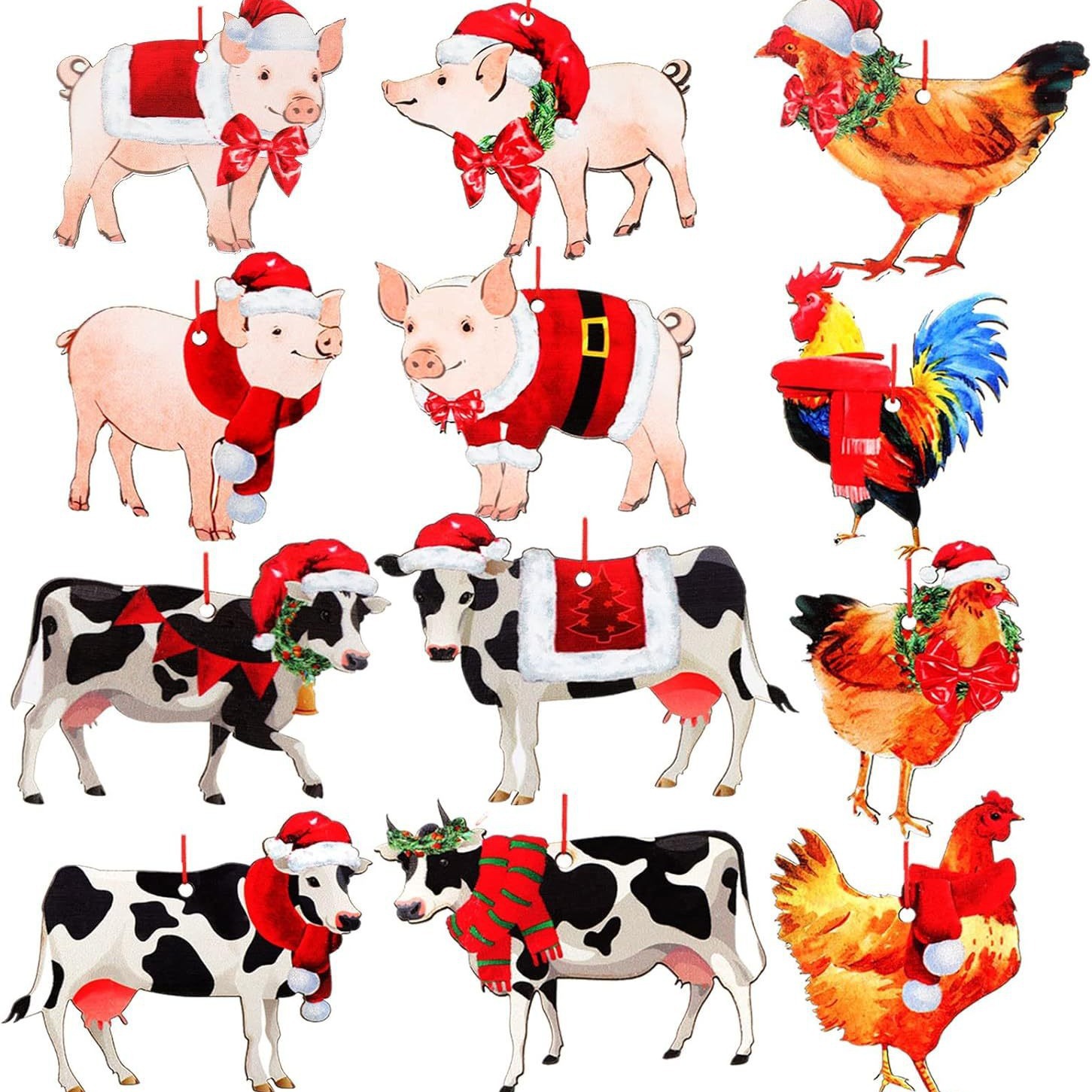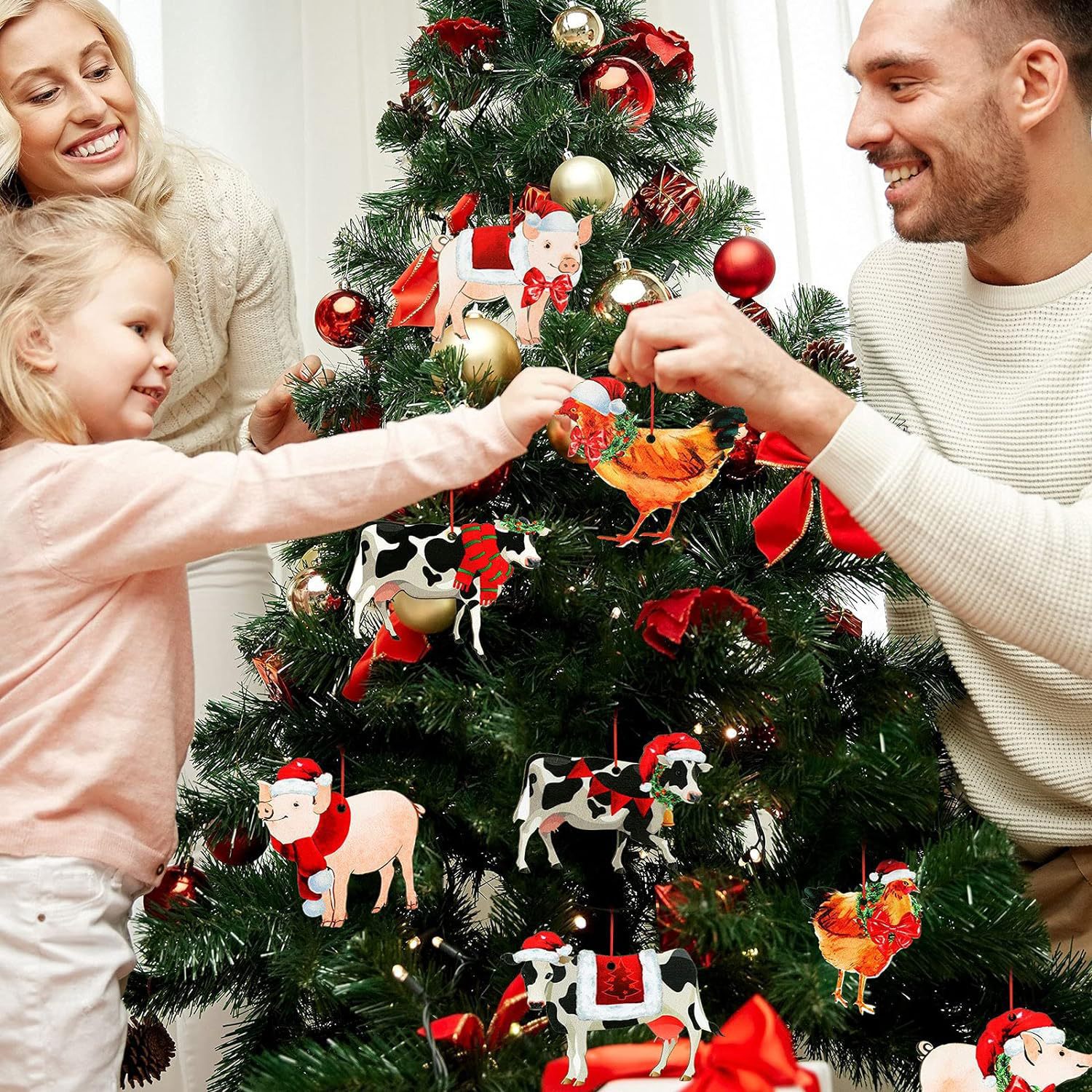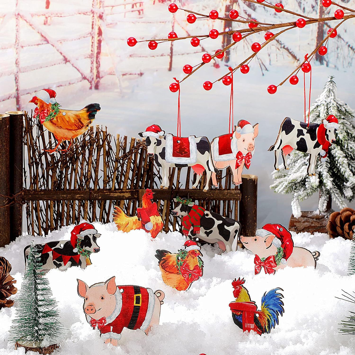 Рождественская ферма Животные украшения Рождественские коровы украшения Деревянная ферма Животные Рождественская елка Деревянная елка