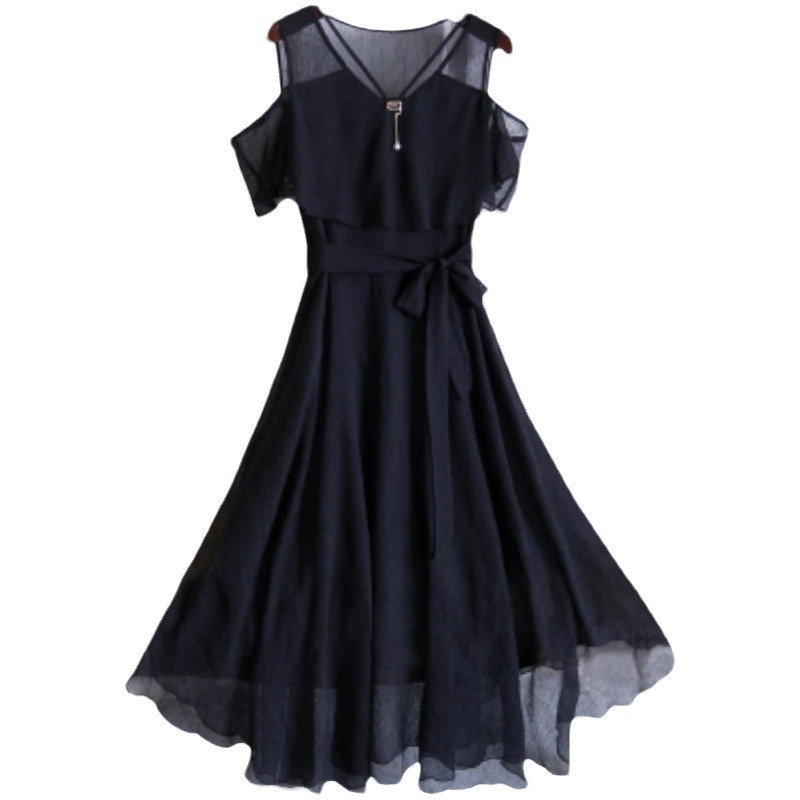Главная страница > Летнее женское платье 2025 года, короткий рукав, асимметричная черная юбка-миди
