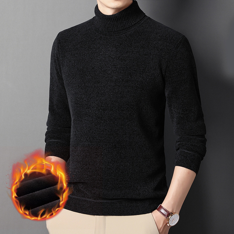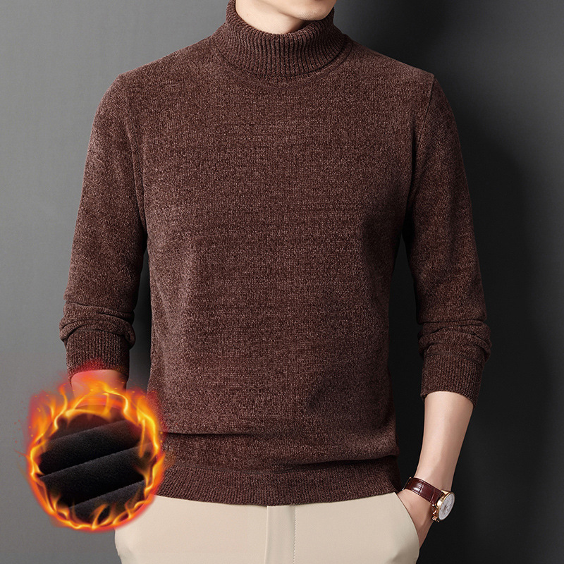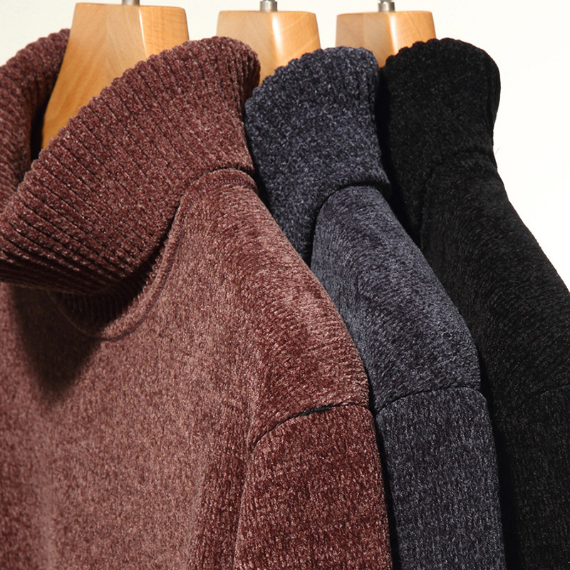Главная страница > Осенне-зимний молодой мужской свитер из утолщенной синели на флисовой подкладке, однотонная Синель с двумя лацканами и высоким воротом