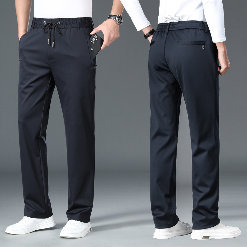 Главная страница > Мужские повседневные брюки на резинке для осени и зимы, свободные прямые брюки с высокой талией и высокой эластичностью, утепленные длинные брюки для мужчин среднего возраста, спортивные брюки