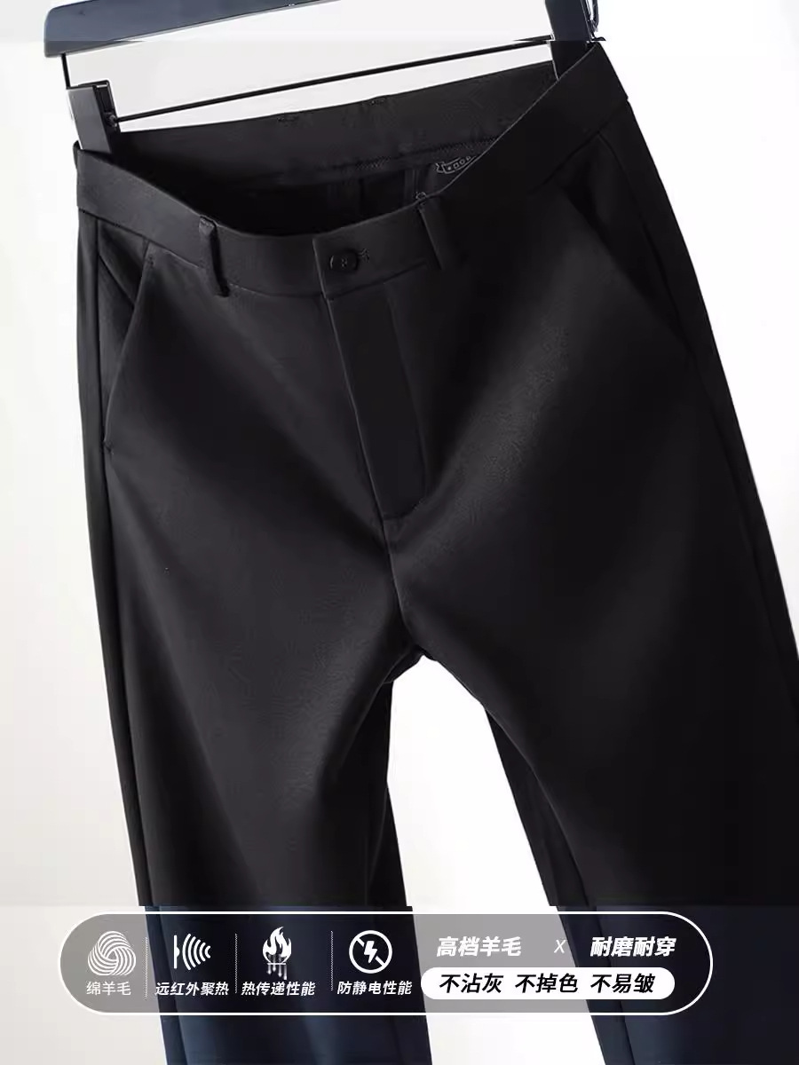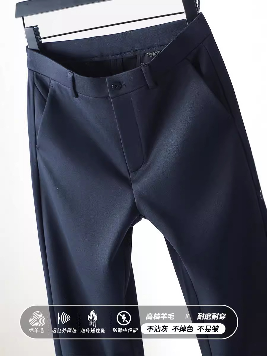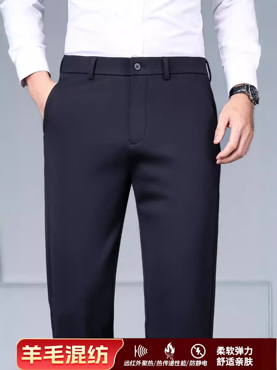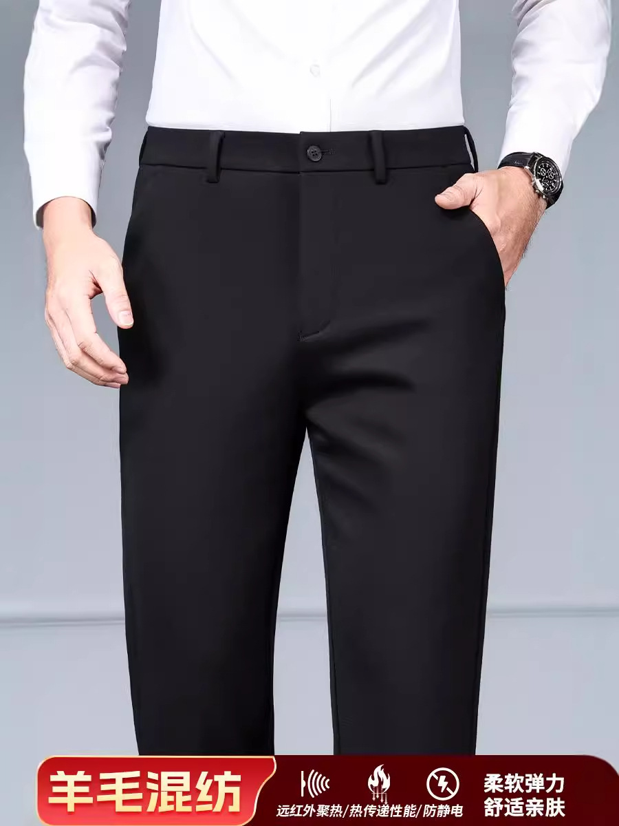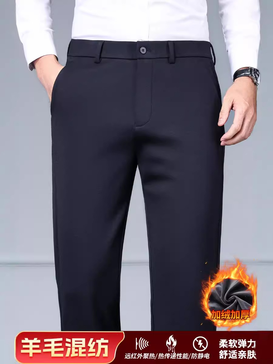 Главная страница > Новые осенние и зимние толстые фланговые брюки с шерстяными бизнес-брюками мужские четырехсторонние эластичные прямые свободные повседневные брюки