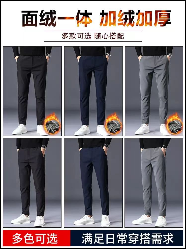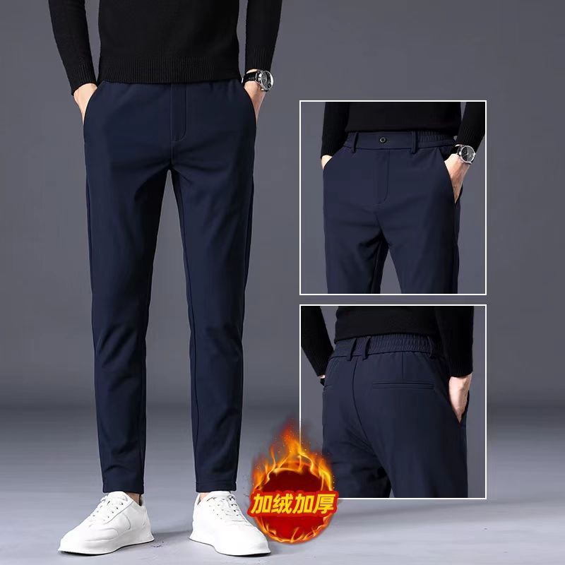 Главная страница > Повседневные брюки мужские осень-зима новые прямые узкие эластичные деловые мужчины 2024 осенью бархатные толстые длинные брюки
