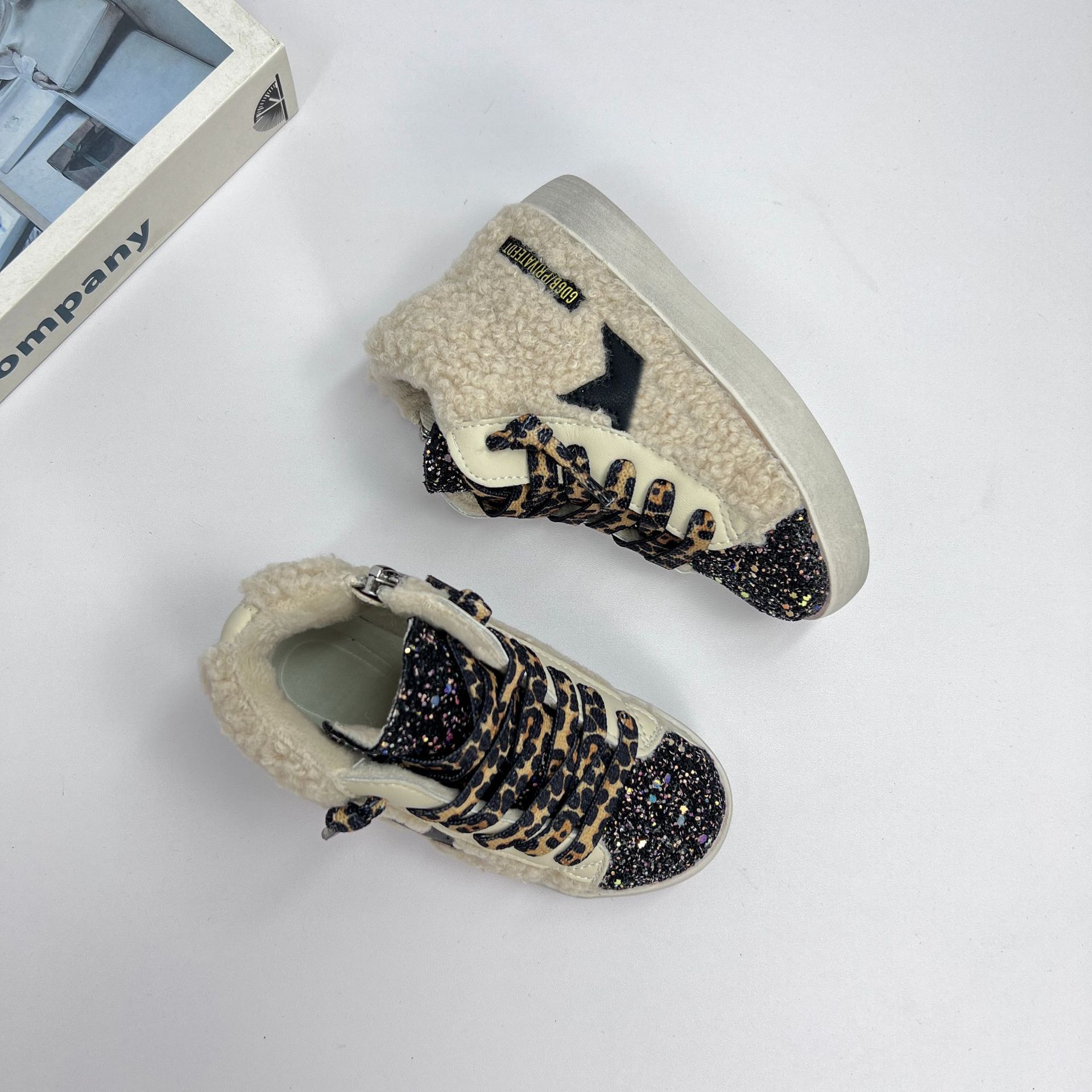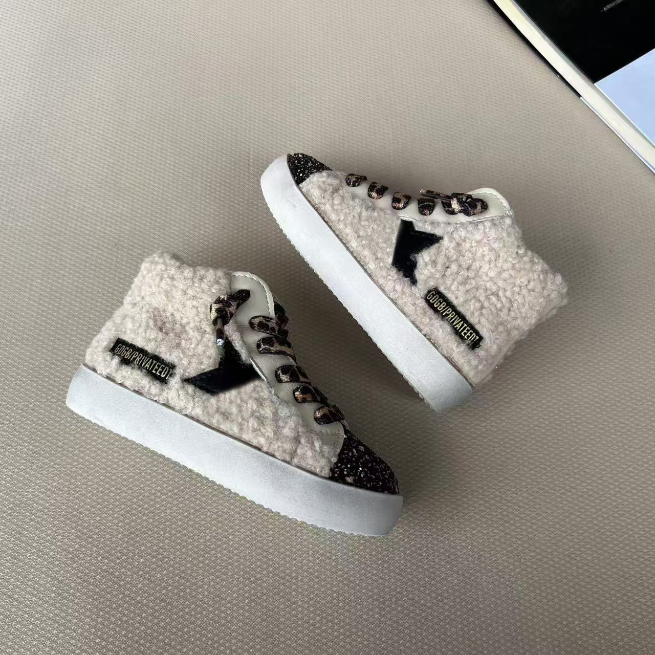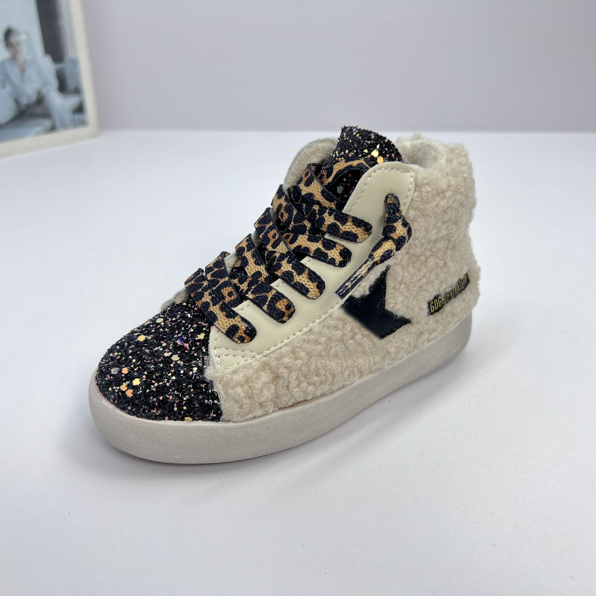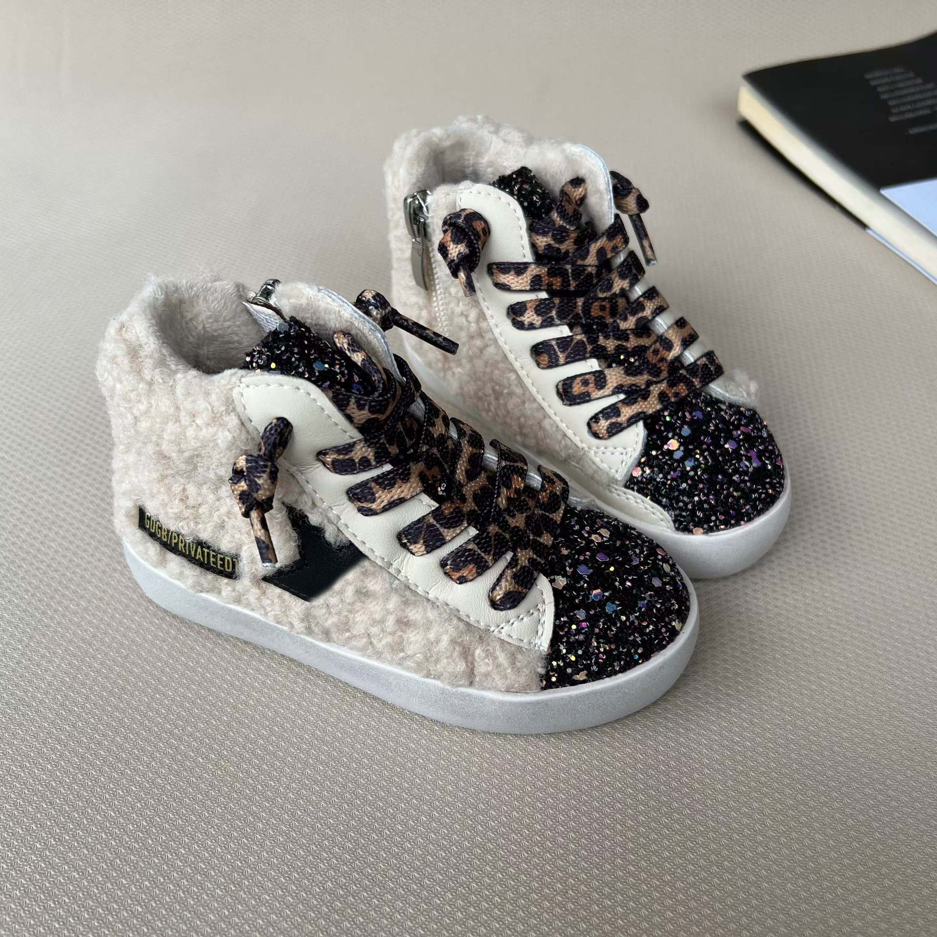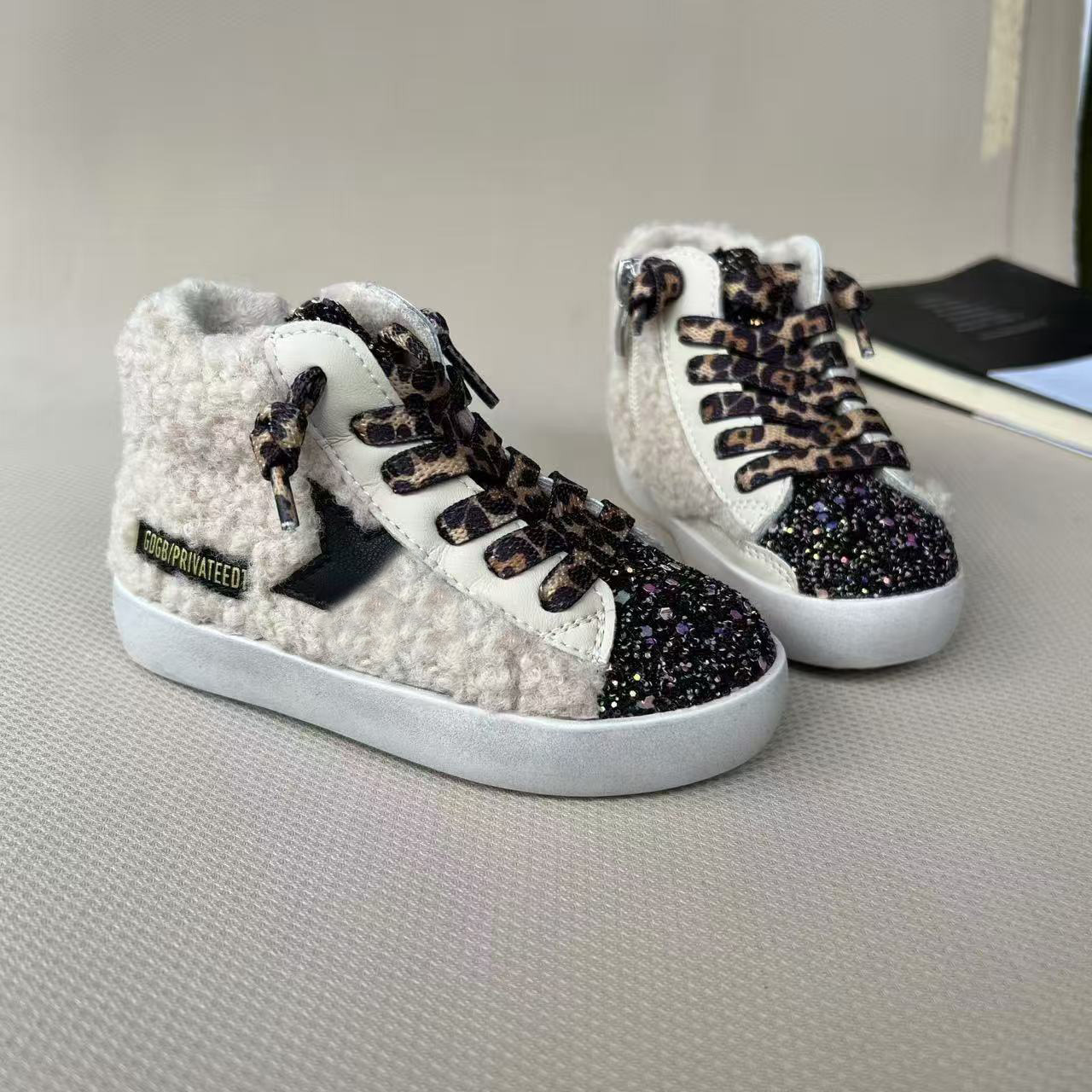 1043, новые зимние детские высокие хлопковые кроссовки со звездами, повседневная обувь для мальчиков и девочек с блестками, маленькая грязная обувь на мягкой подошве