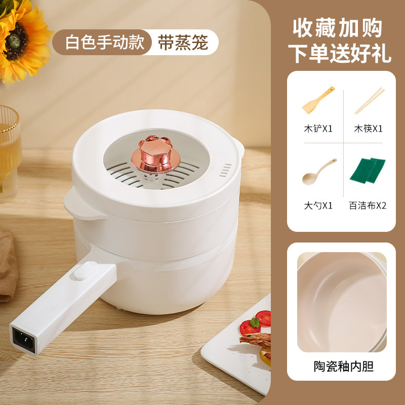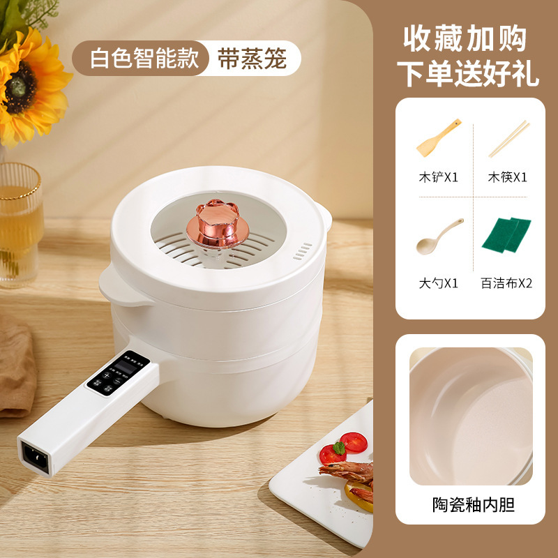 Прямые продажи с фабрики, белая керамическая глазурованная электрическая кастрюля с длинной ручкой, небольшая электрическая кастрюля для общежития, бытовая универсальная электрическая кастрюля с антипригарным покрытием