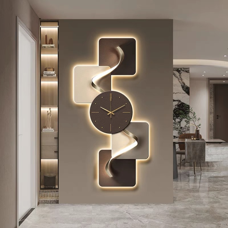 Главная страница > Современная доступная роскошная декоративная картина для входа с часами, светодиодная световая картина, высококачественная подвесная картина для коридора, фреска для гостиной