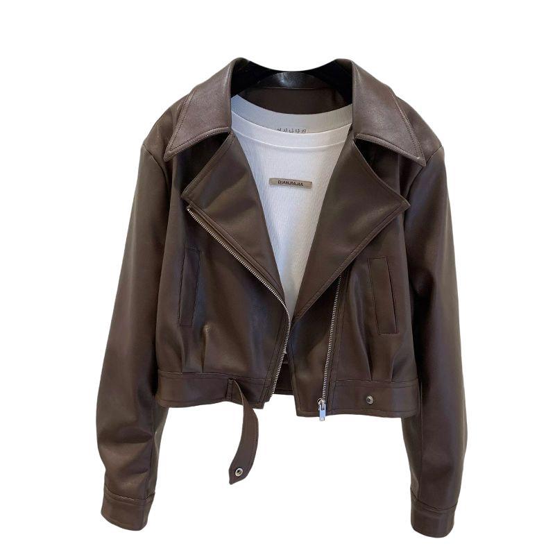 Главная страница > Женская кожаная куртка в европейском стиле с флисом, новый осенний стиль, элегантный отложной воротник, миниатюрная короткая универсальная куртка для похудения из искусственной кожи.
