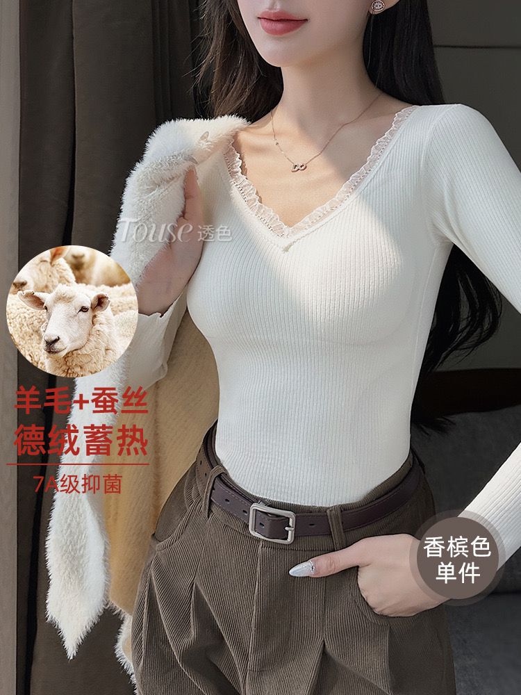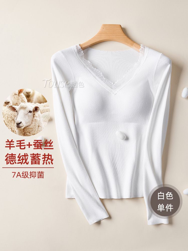 Кашемир шелковый V-образный шлифовальный двухсторонний шерстистый осенне-зимний женский комплект термобелья