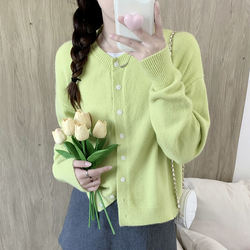 Корейская система высокого уровня, минус иностранный стиль, длинный рукав, трикотажный кардиган, женский осенний и зимний новый мягкий клейкий свитер