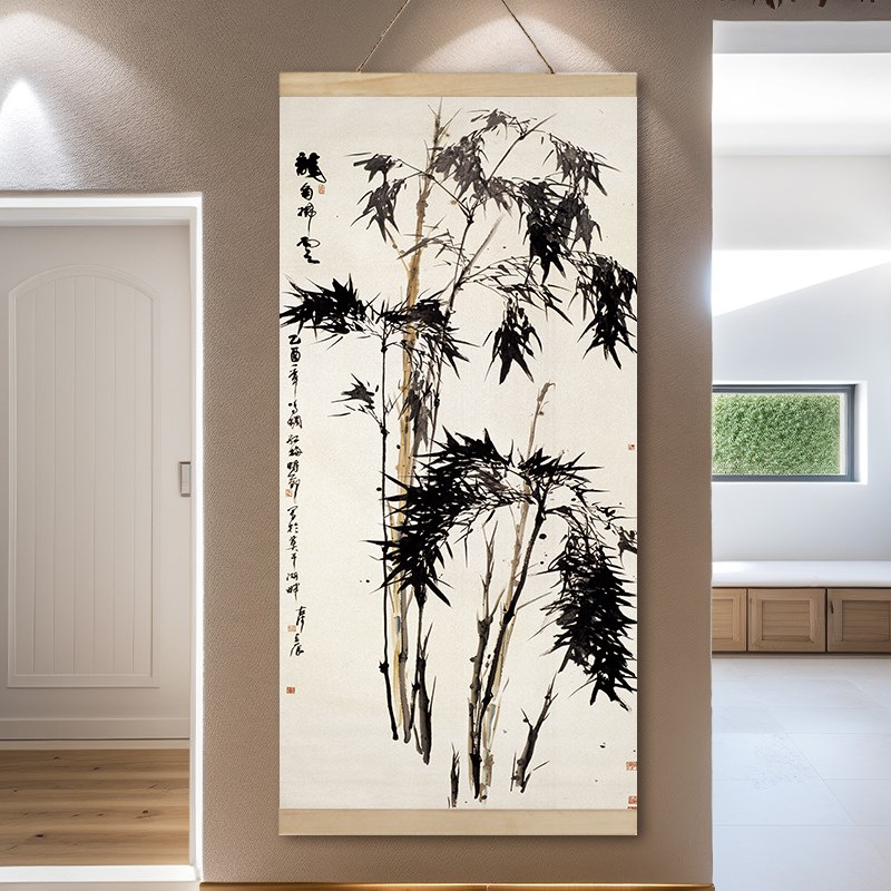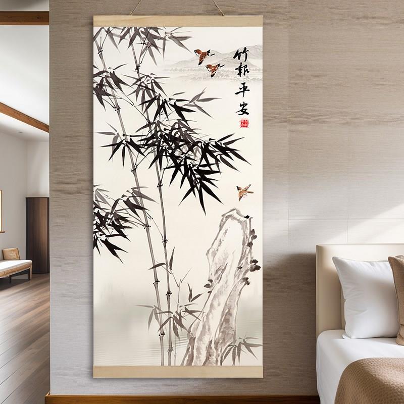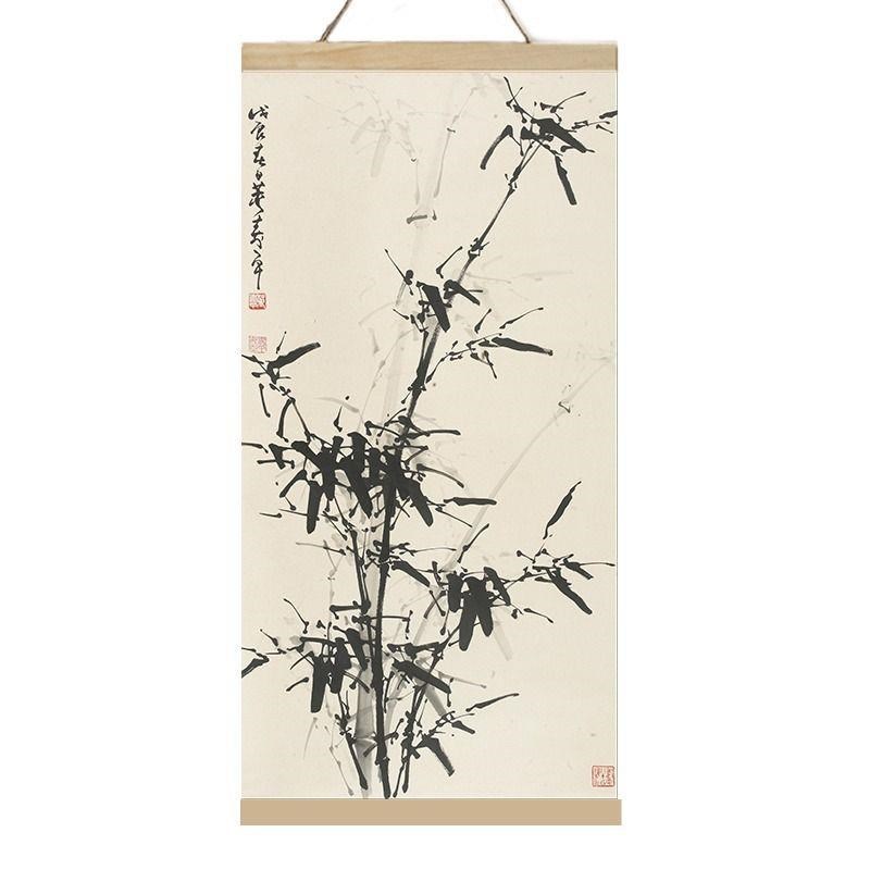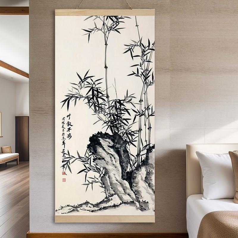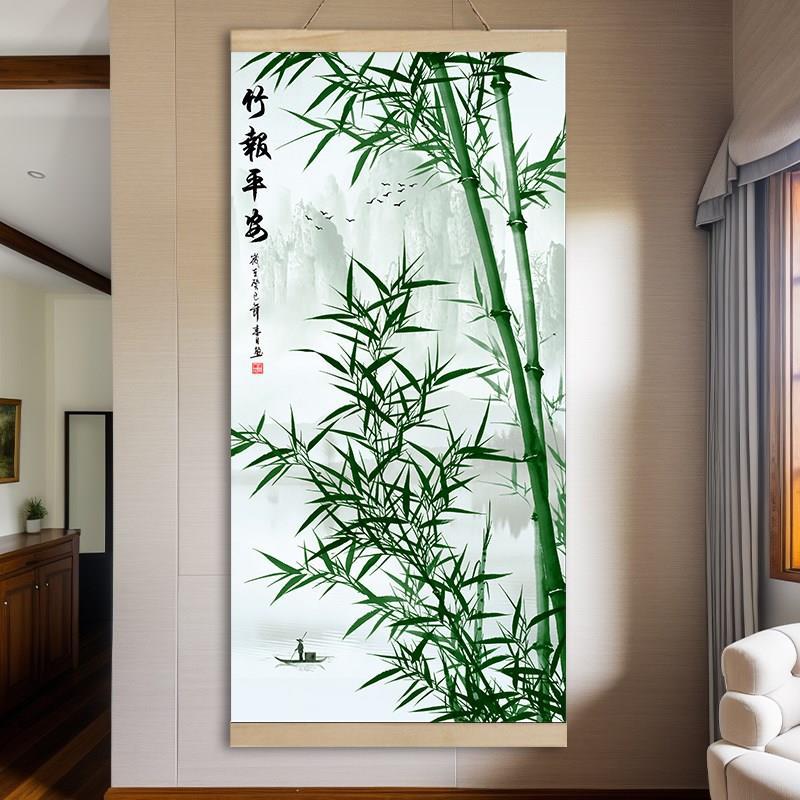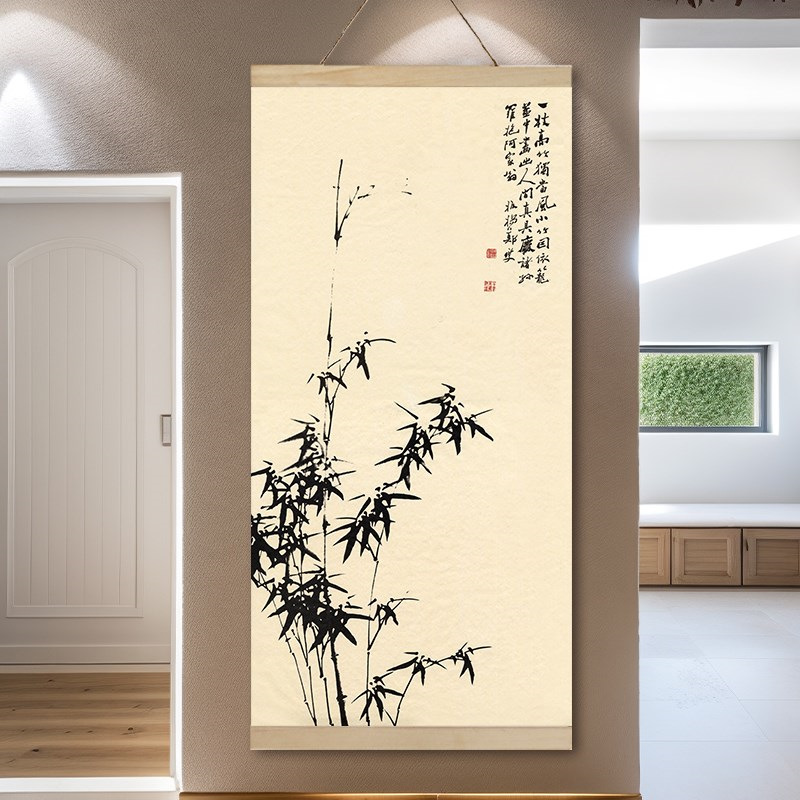 Бамбуковая газета безопасная висячем роспись гостиной входной двери двери Бамбуковая рамка декоративная роспись Современная чернила пейзаж вертикальный пейзаж