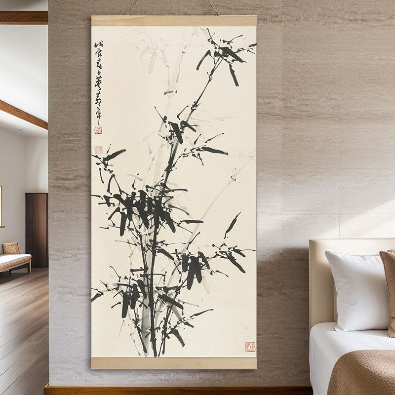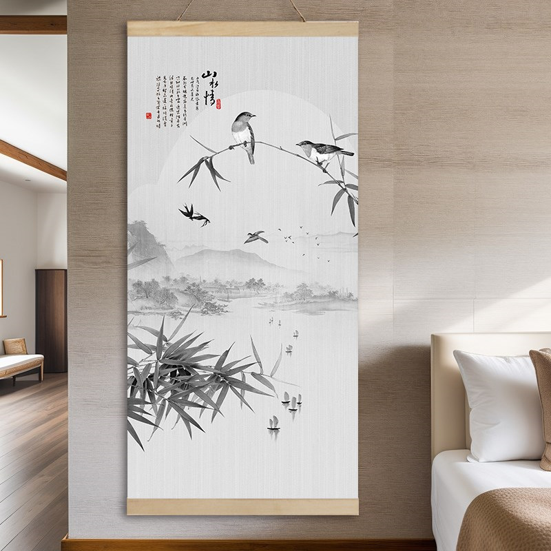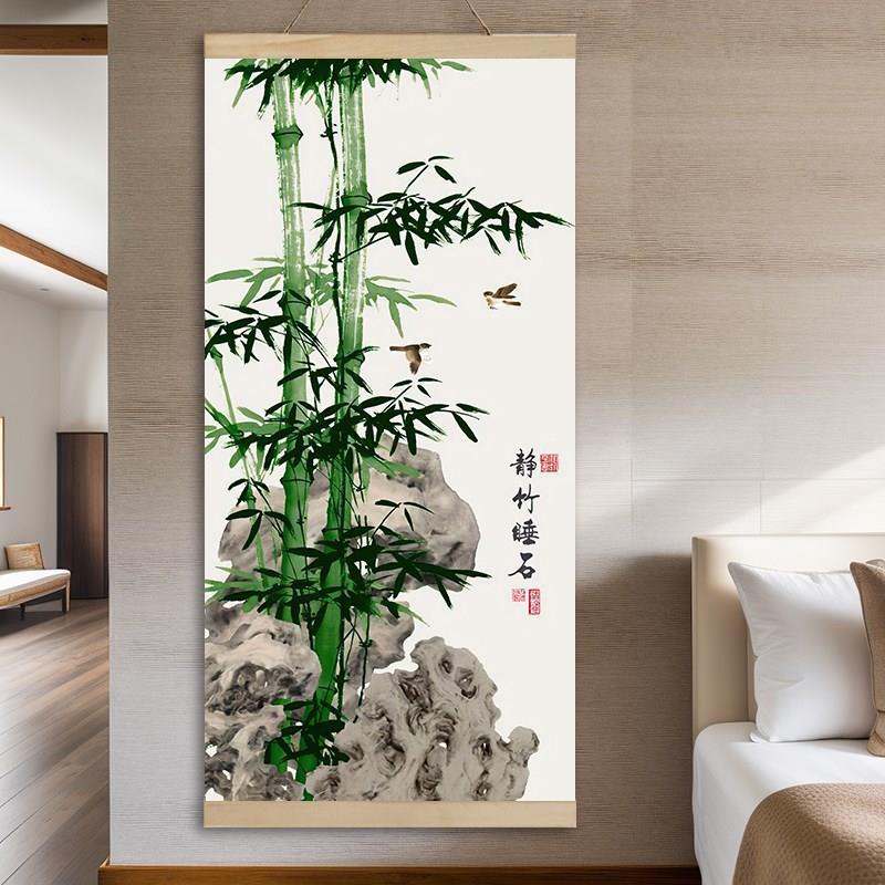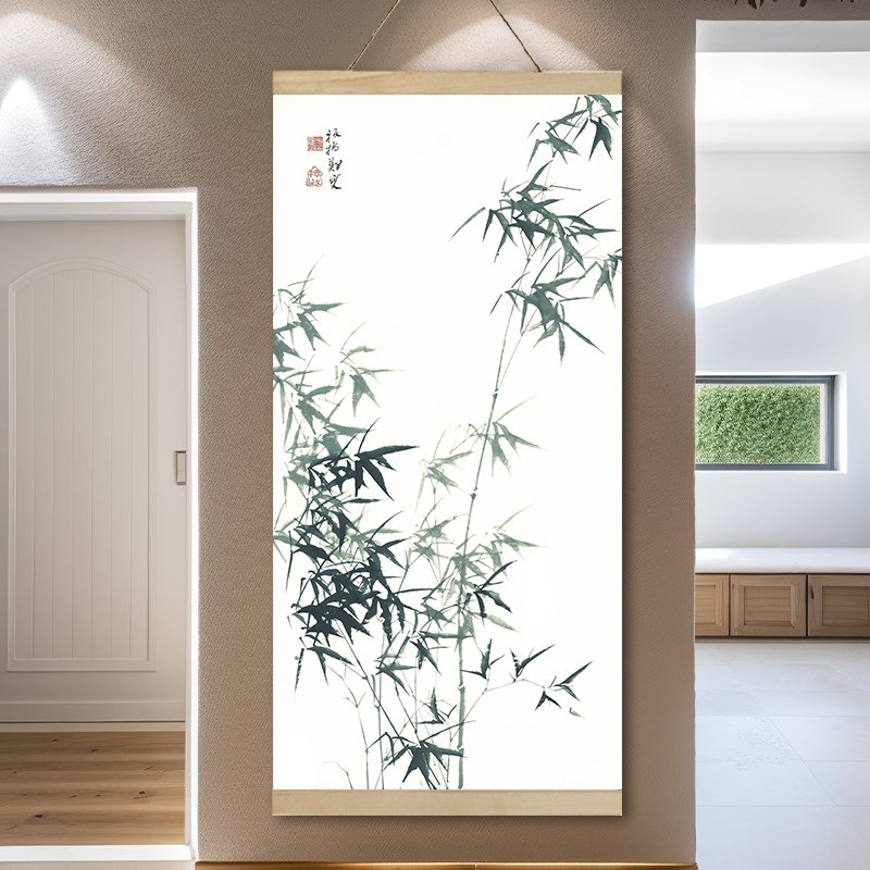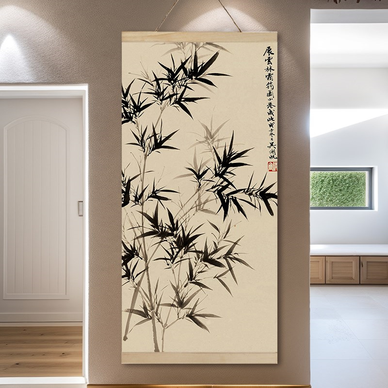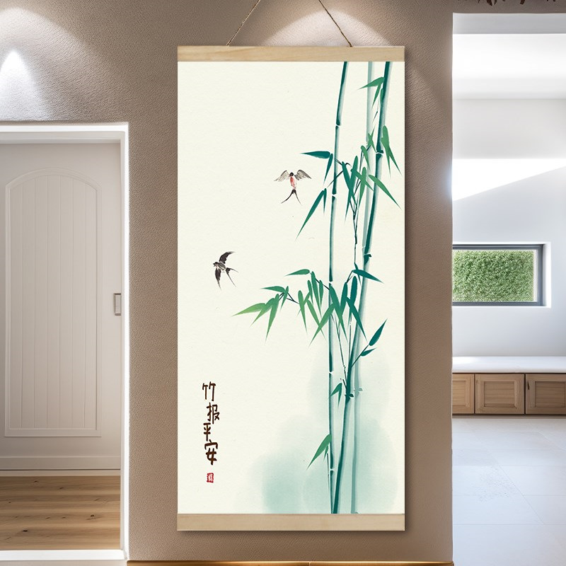 Бамбуковая газета безопасная висячем роспись гостиной входной двери двери Бамбуковая рамка декоративная роспись Современная чернила пейзаж вертикальный пейзаж