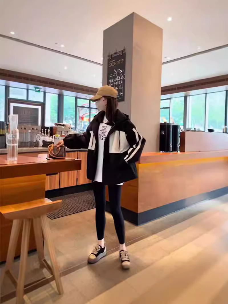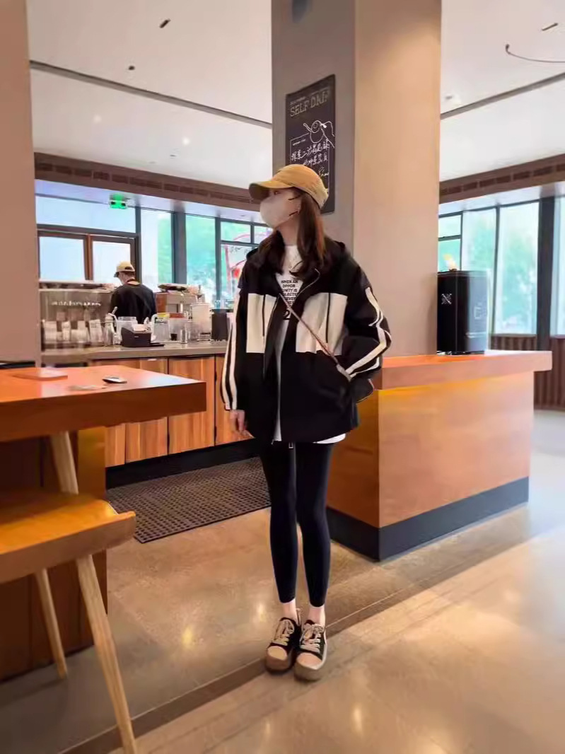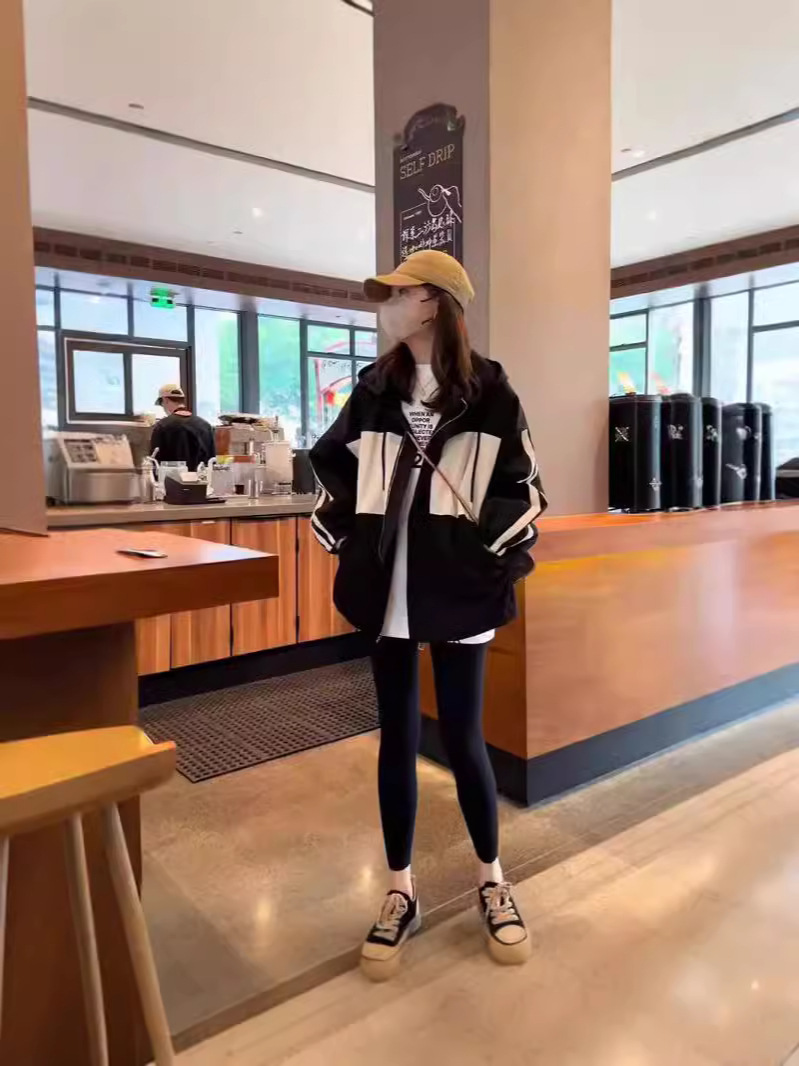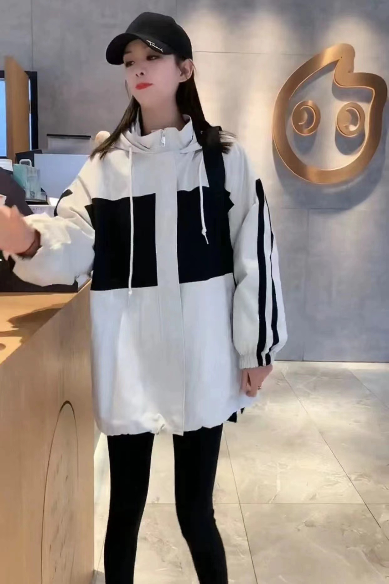 Главная страница > Женская ветровка с цветовыми блоками, весна-осень 2024, универсальная спортивная куртка в корейском стиле для миниатюрных женщин, повседневный топ с длинным рукавом.