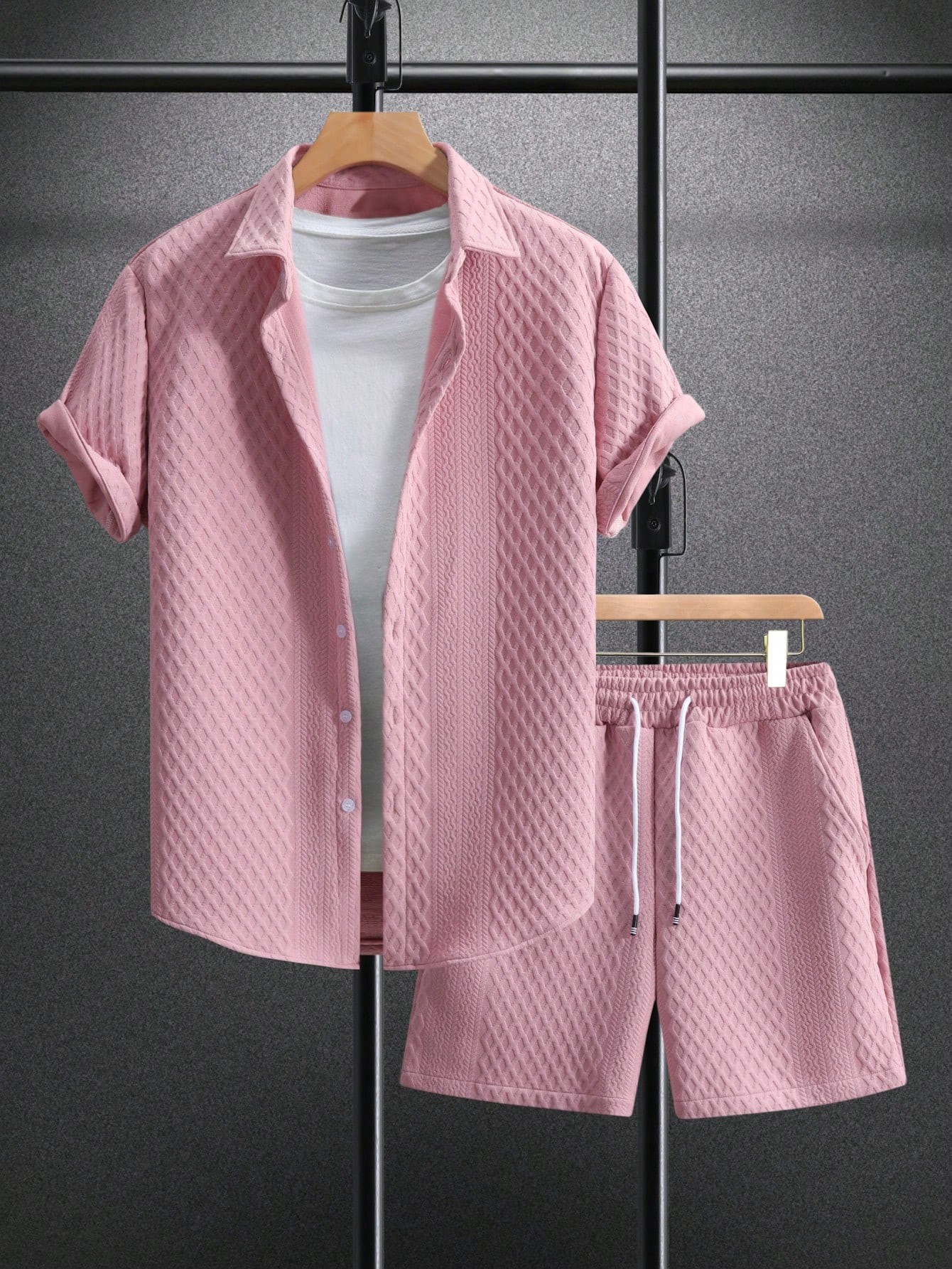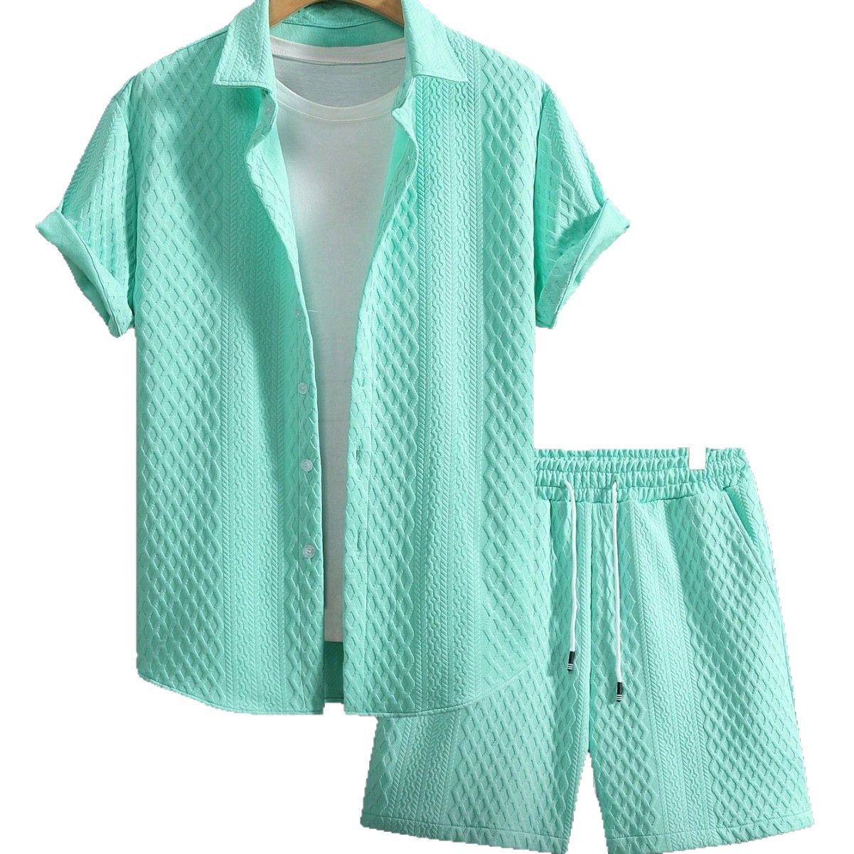 Новый мужской повседневный костюм для внешней торговли, европейский размер, модный бренд, модная свободная рубашка большого размера с короткими рукавами, шорты, комплект из двух предметов