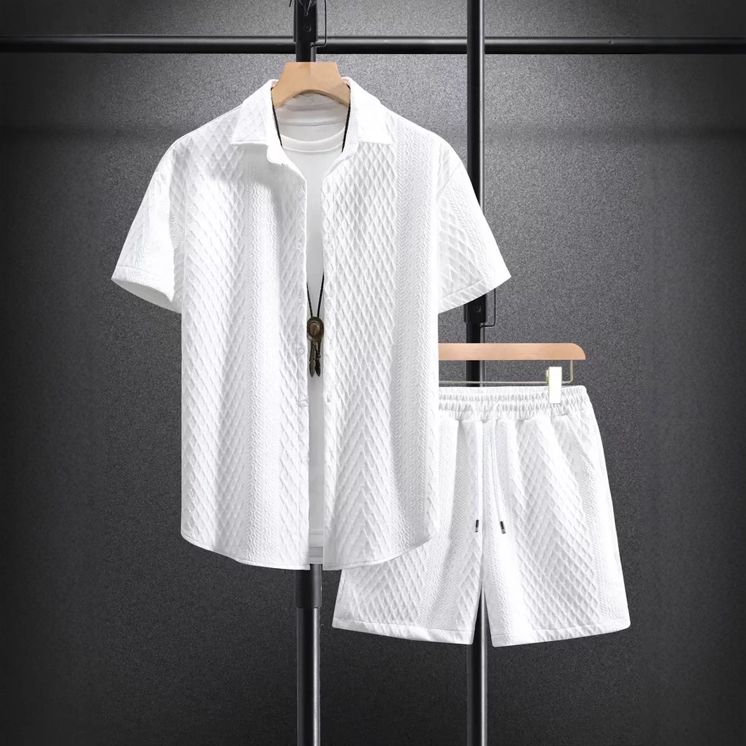 Главная страница > Новый мужской повседневный костюм для внешней торговли, европейский размер, модный бренд, модная свободная рубашка большого размера с короткими рукавами, шорты, комплект из двух предметов
