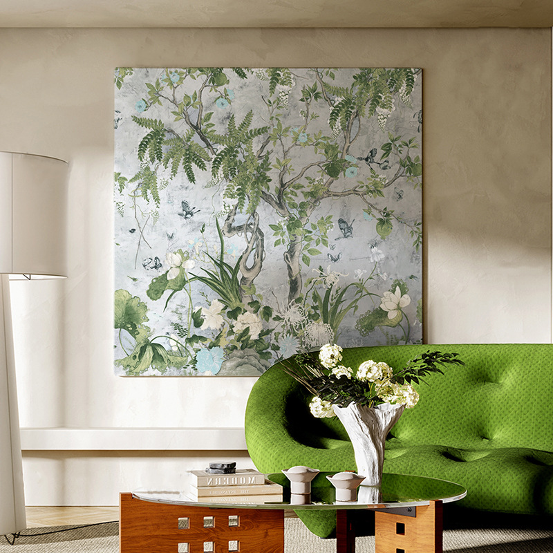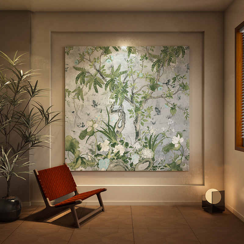 Высококачественная декоративная живопись растений, новый китайский стиль, линия, цветок глицинии, вход в спальню, дзен, диван, фон, настенная живопись