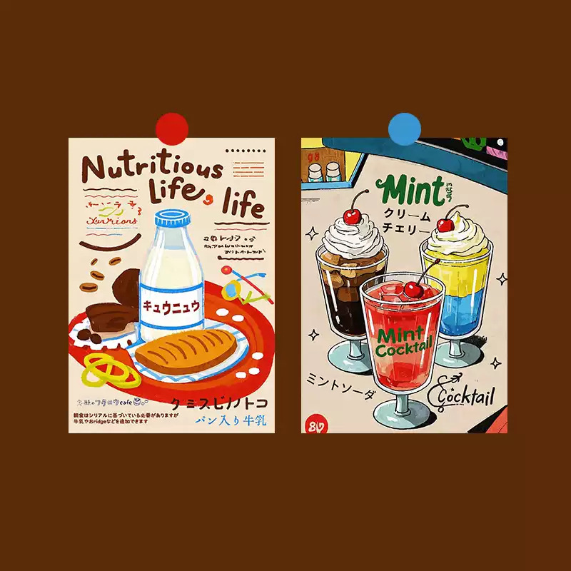 Главная страница > Ретро журнал ветер рисованной иллюстрации постер магазин ресторан кафе атмосфера декоративная роспись ins фото фон