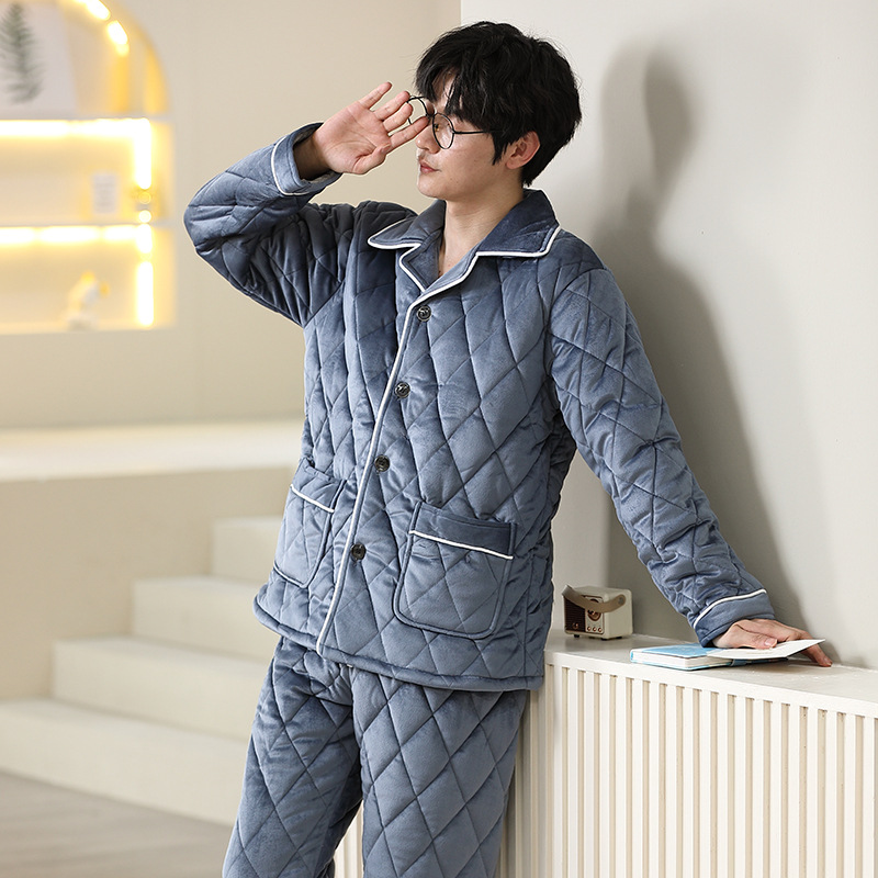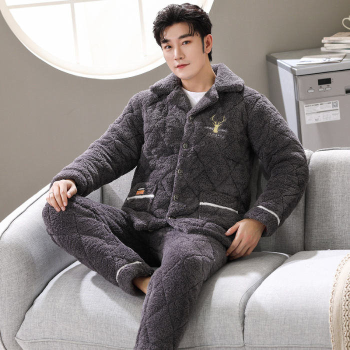 Стеганая Пижама, Мужская зимняя коралловый флис, трехслойный сверхутолщенный теплый костюм на флисовой подкладке, зимняя Домашняя одежда RR
