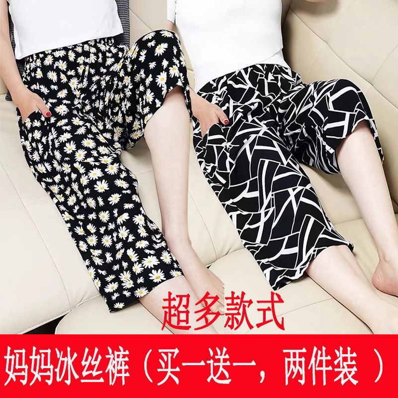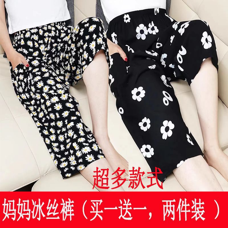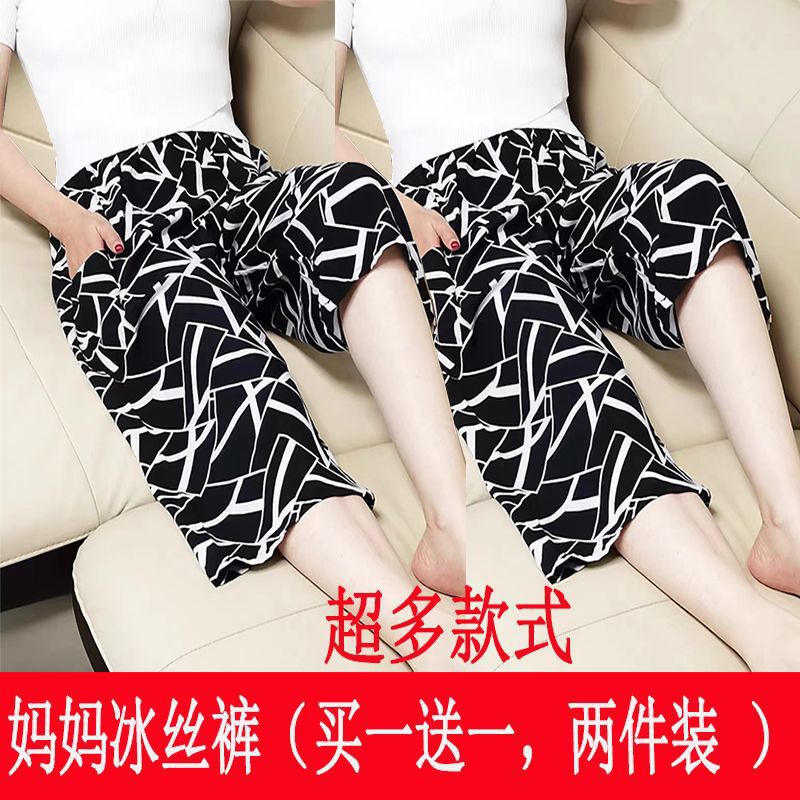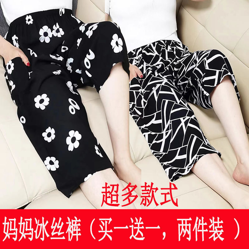 Главная страница > Летние свободные женские шорты из тонкого ледяного шелка больших размеров для пожилых мам, повседневные брюки с высокой талией для бабушки.