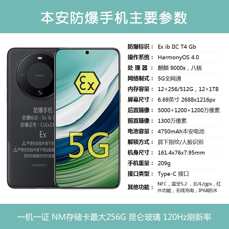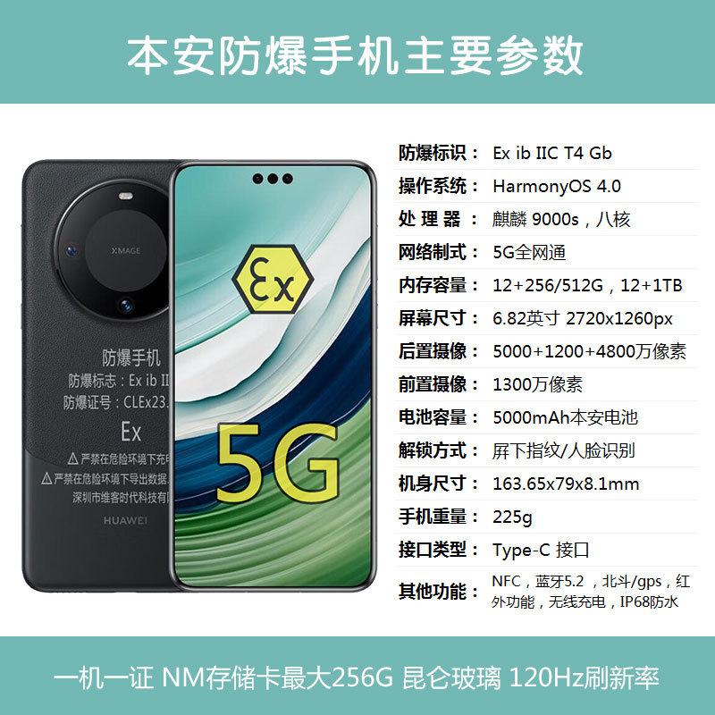 Угольная безопасность Взрывозащищенный мобильный телефон Hua i для mate60pro Угольная шахта Ben'an Подземный химический завод нефти 5G Полная сеть NFC