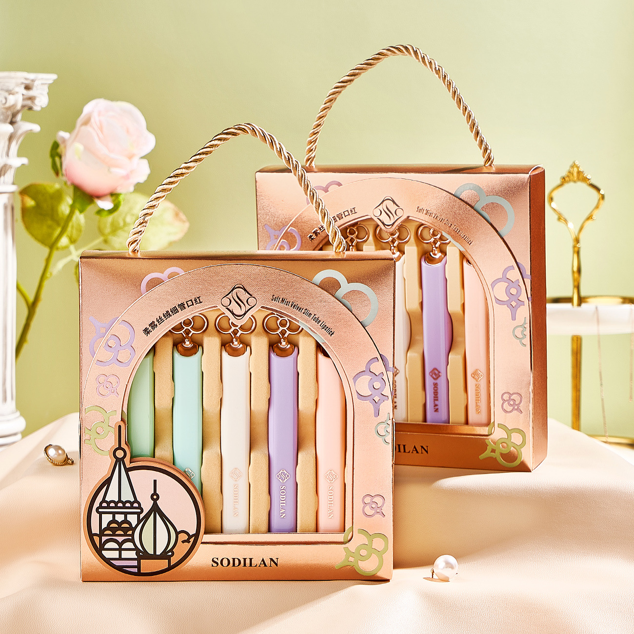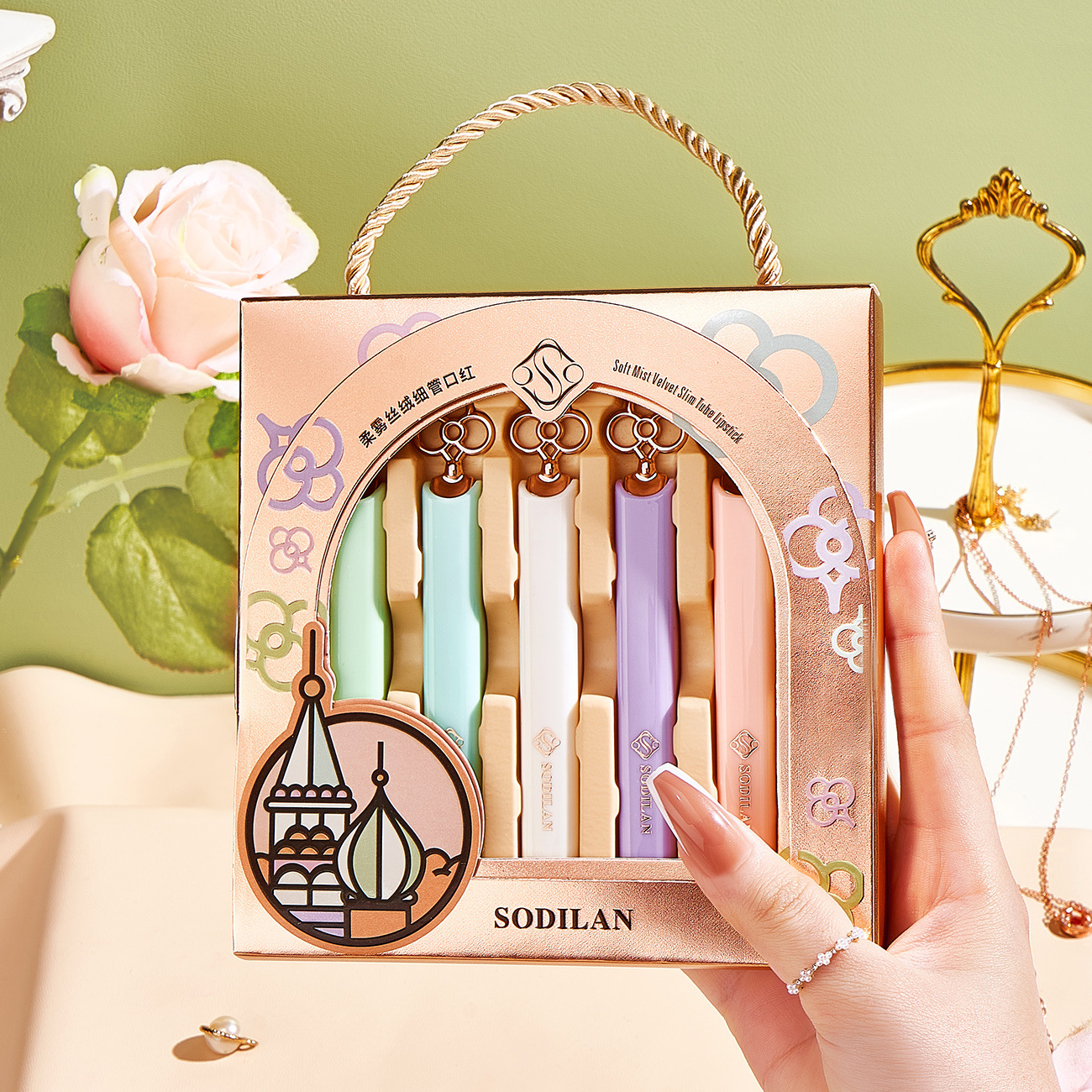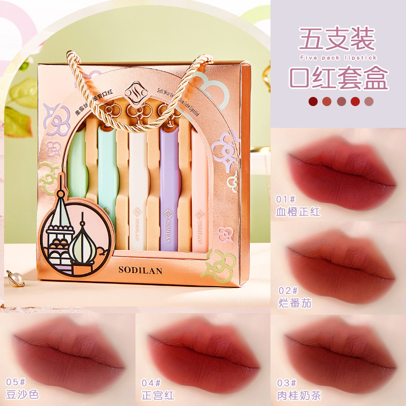 Главная страница > Sotillan Thin Tube Набор губной помады Коробка из пяти упаковок Не выцветающий водостойкий увлажняющий бальзам для губ Туман Матовая глазурь для губ