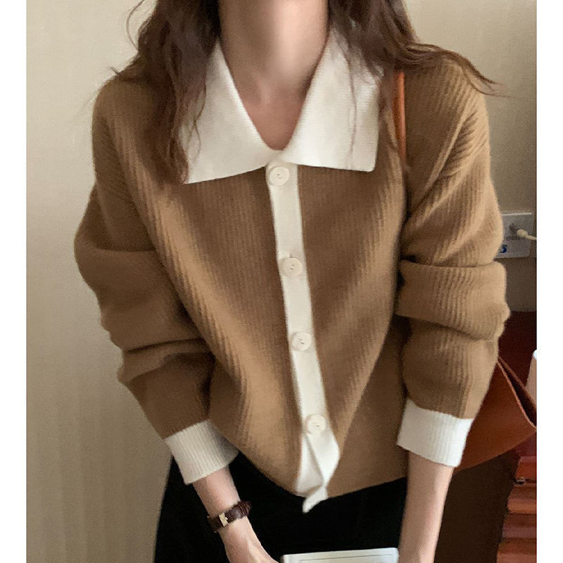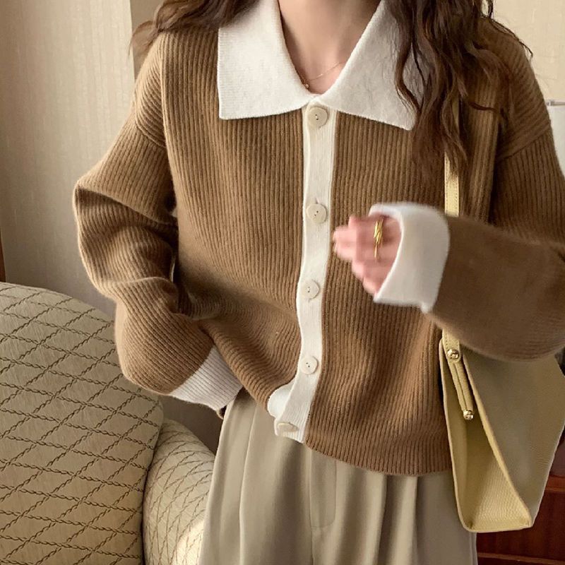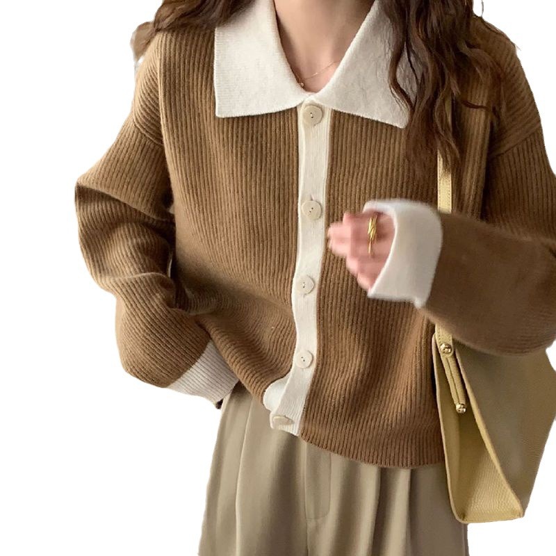 Главная страница > Женский вязаный кардиган-жакет с отложным воротником на одной пуговице, свободный крой, в стиле ретро с цветовыми блоками, в гонконгском стиле, для носки поверх верхней одежды, коллекция 2025 года
