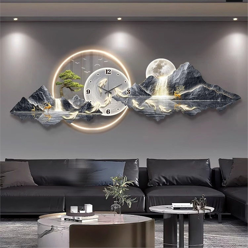 Главная страница > Настенные часы для гостиной, декоративная живопись, простой современный диван, фон, настенная подвесная картина, настенный светильник, картина, свет, роскошный восход, золотая гора
