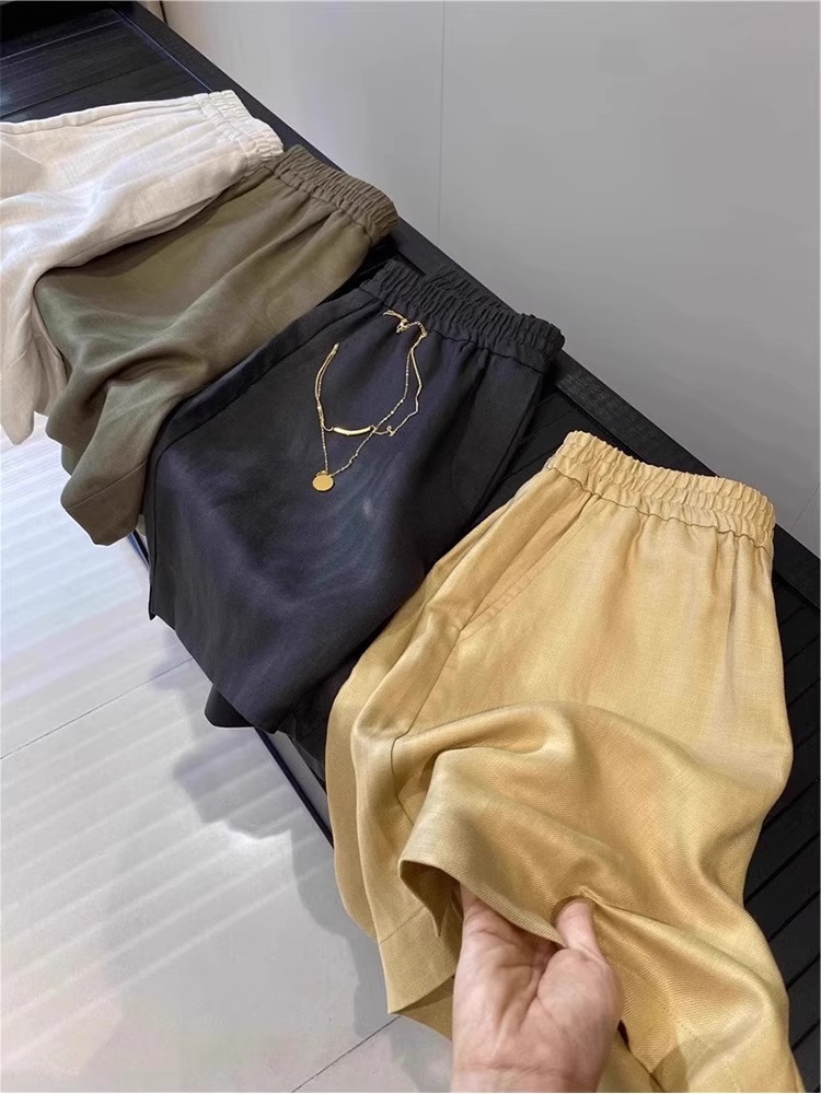 Главная страница > белые льняные шорты из тенселя для женщин, летние тонкие, миниатюрные широкие брюки А-силуэта, повседневные, свободные и очень красивые брюки