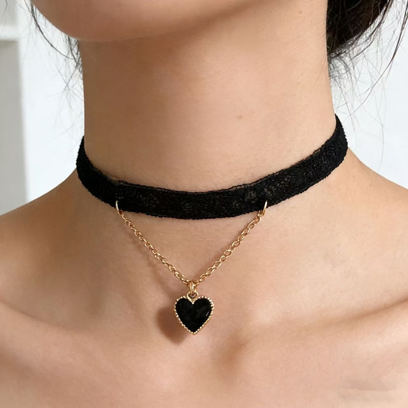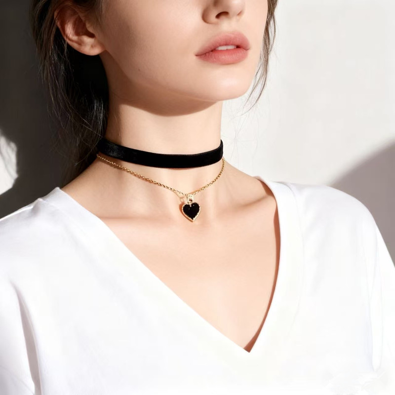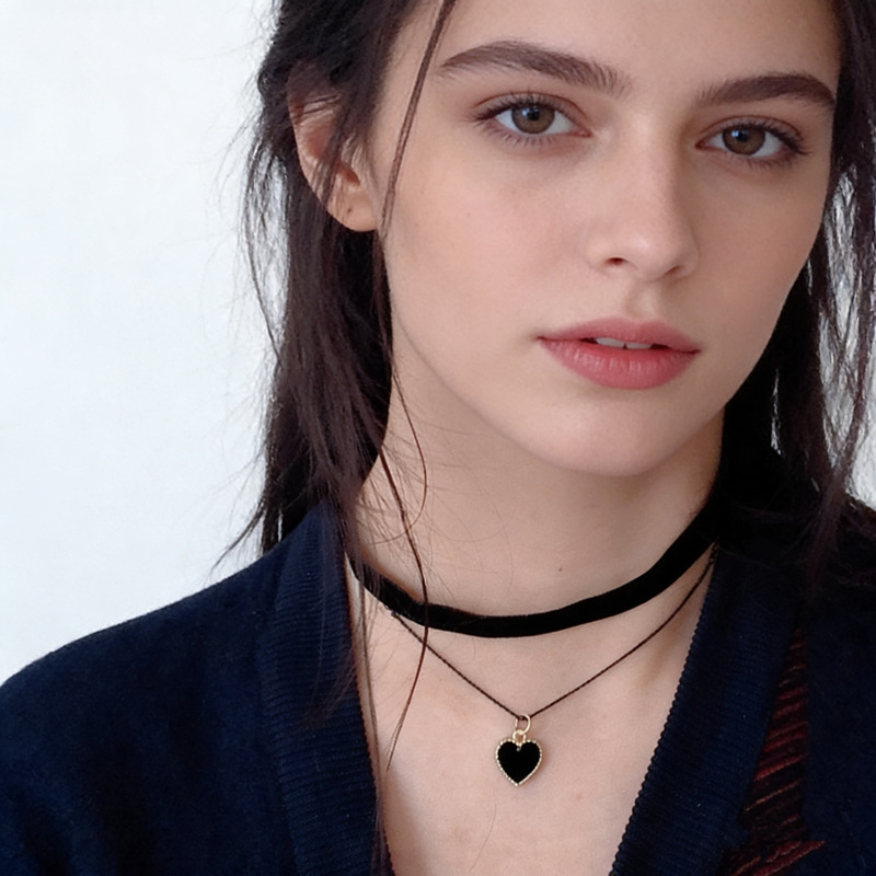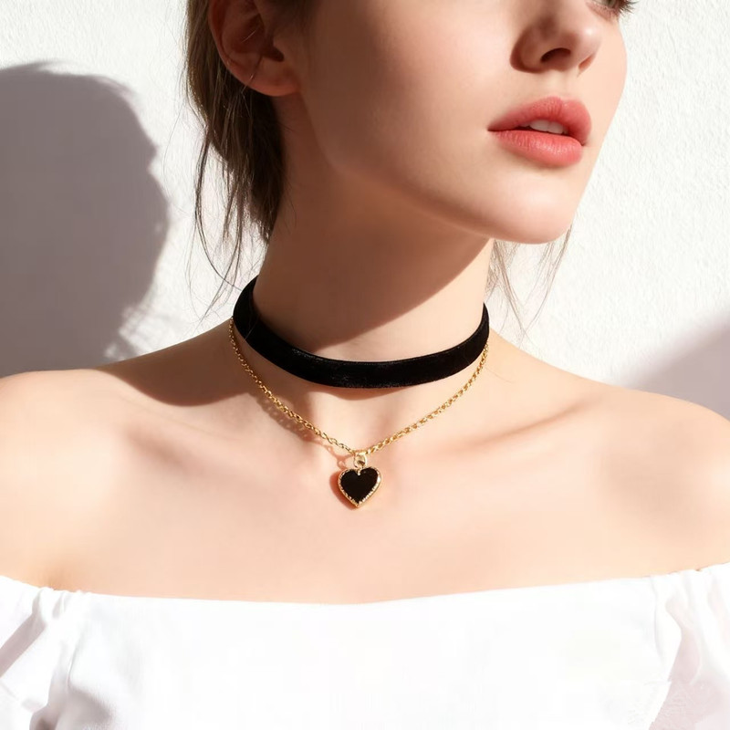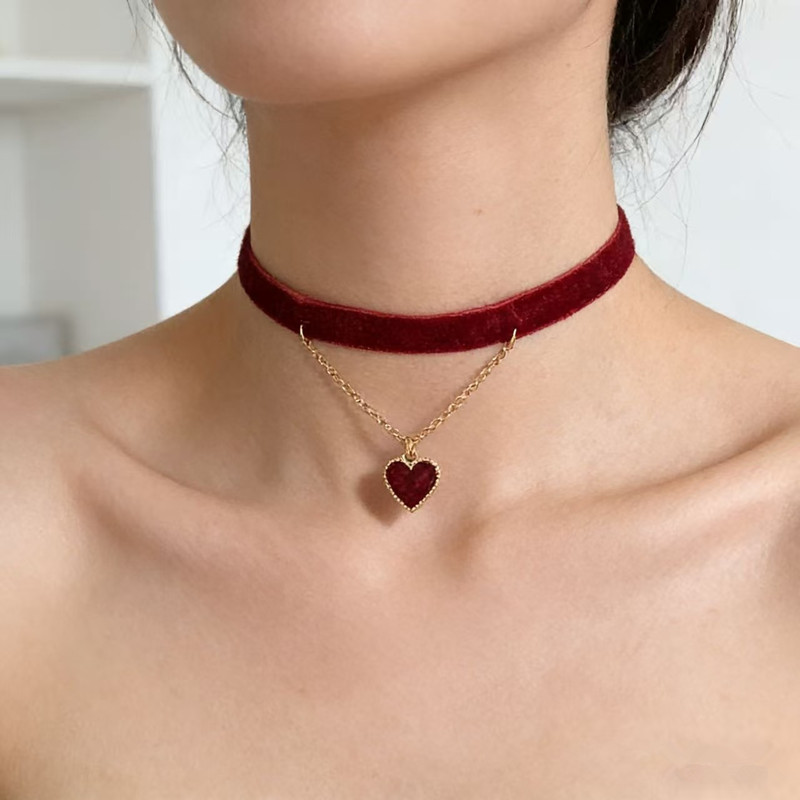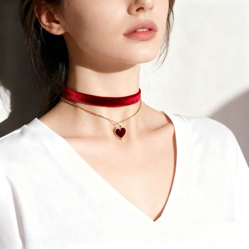 Главная страница > Европейское и американское двухслойное ожерелье, цепочка на ключицу, колье, воротник, женский красный персиковый кулон в форме сердца, бархатный высококачественный нишевый шейный ремешок