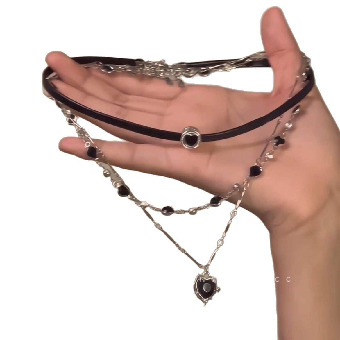 Главная страница > Многослойное колье в стиле Y2K, женское, сексуальное, милое, стильное, черная кожаная цепочка-чокер на ключицу