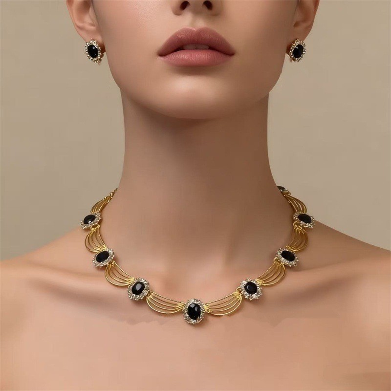 Овальное ожерелье с полумесяцем и полосой из черного кирпича