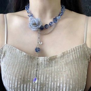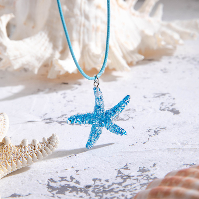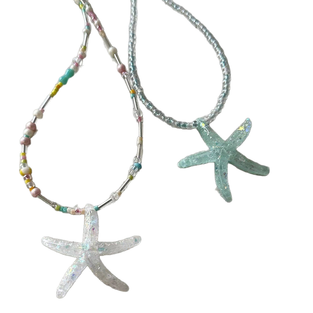 Ожерелье из бисера с синей морской звездой [длинный стиль]