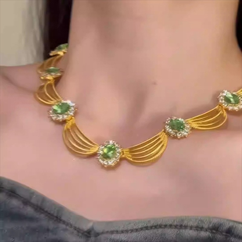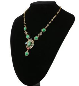 Овальное ожерелье с полумесяцем и полосой из зеленого кирпича
