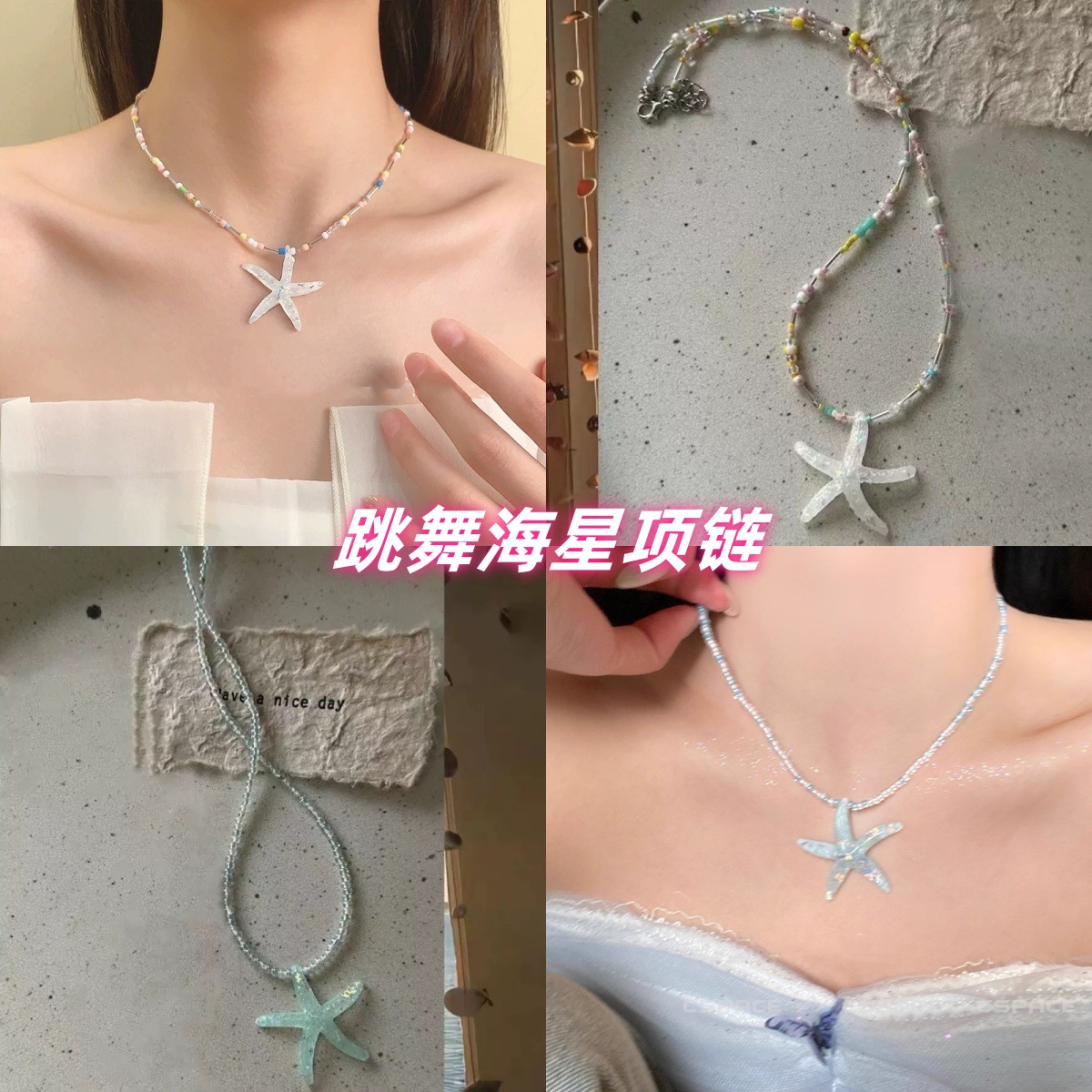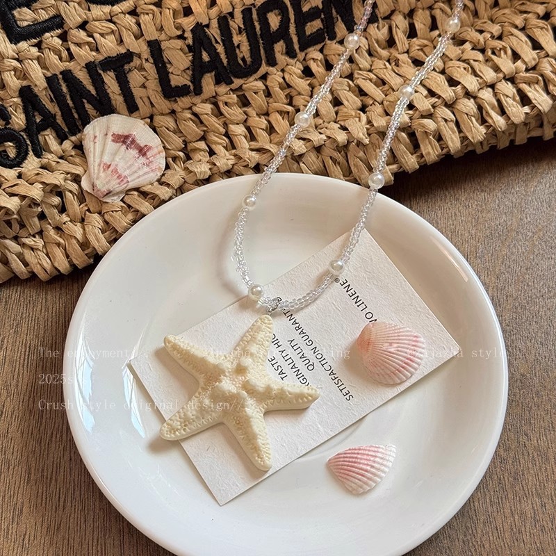 Ожерелье из бисера с розовой морской звездой [короткий стиль]