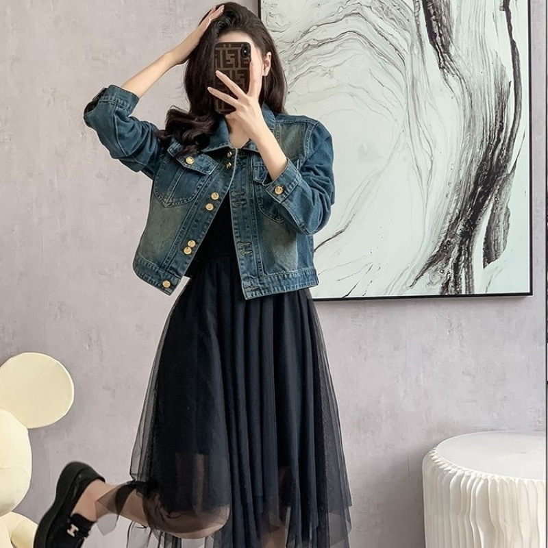 Главная страница > Женская джинсовая куртка весна-осень, новая, свободного кроя, стройнящая, молодежная, стильная, французский дизайн, короткая куртка, топ